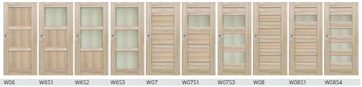 Двери изготовлены из высококачественной МДФ, обтянутой рамой. с поверхностью ECO TOP, SILKSTONE. Вертикальная рама, вертикальная или горизонтальная структура (версия H), горизонтальные панели. Текстура панелей горизонтальная в узорах W02, W03, W07, W08, вертикальная в узорах W05, W06.