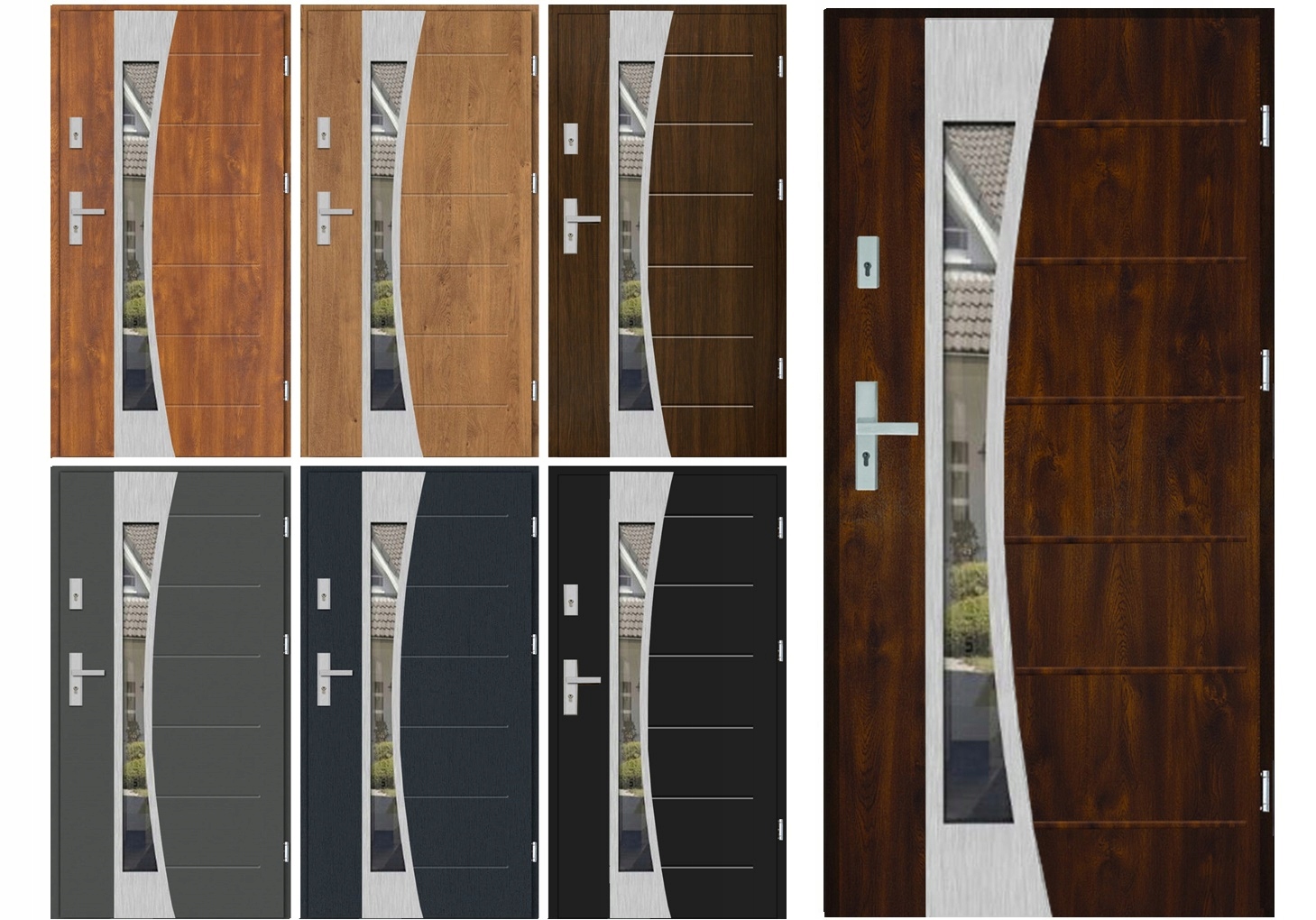 • двери из листового металла с покрытием с декоративной пленкой ПВХ в тон оконной фурнитуры,