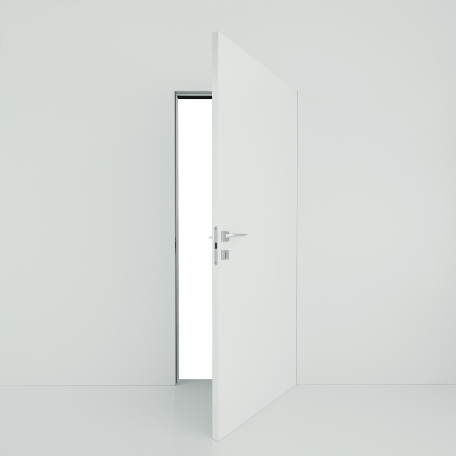 Дверные полотна и коробка подготовлены под покраску настенной краской, что позволяет «спрятать» дверь в стену того же цвета или подчеркнуть ее присутствие в помещении.