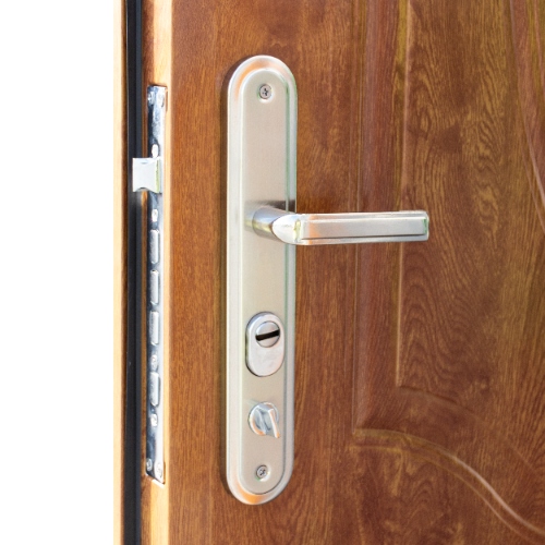 Двери оснащены одним центральным замком с девятью точками запирания, дополнительным дневным замком и четырьмя регулируемыми петлями.