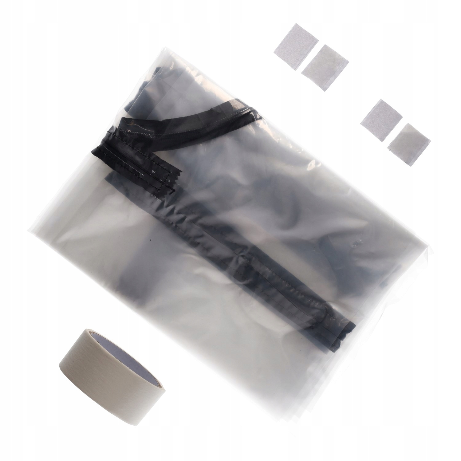 Штора изготовлена ​​из прозрачной фольги LDPE (полиэтилена) с высокой механической прочностью и устойчивость к факторам, возникающим во время ремонтных работ, таким как: пыль, вода, краски и запахи.
