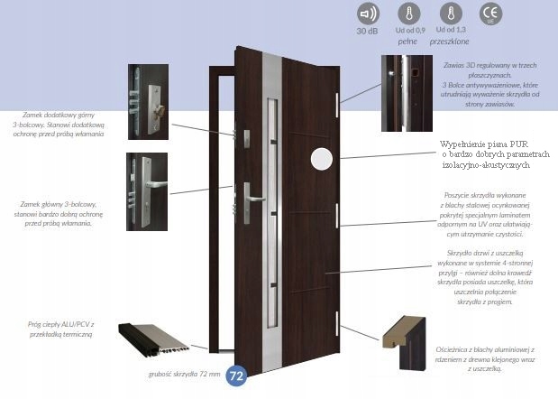 72 двери TERMO характеризуются превосходными< /h1>параметры теплопроводности. Использование стальной рамы с деревянным наполнением и пенополиуретана в качестве наполнения дверного полотна делает дверь идеальной для энергосберегающих и пассивных домов.
