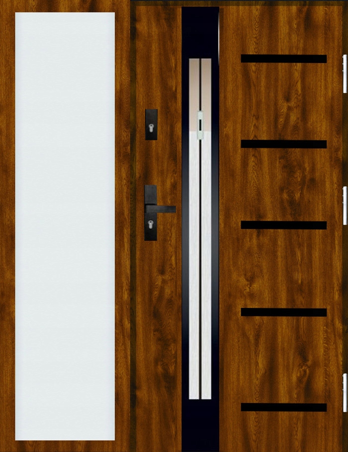 ДВЕРНОЕ ПОЛОТНО ТОЛЩИНОЙ 72 ММ, ЗАПОЛНЕННОЕ ПЕНОЙ, СТАЛЬНАЯ И ДЕРЕВЯННАЯ РАМА С 3D ПЕТЛЯМИ, РУЧКА, ВСТАВКИ В ОДНОЙ СИСТЕМЕ