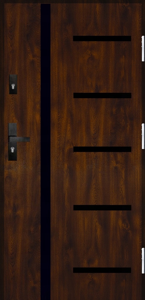Изготовлены из очень качественной оцинкованной стали толщиной 0,6 мм, покрыты декоративной пленкой/шпоном ПВХ - с повышенной устойчивостью к погодным условиям и идеально сочетается с оконной фурнитурой польских производителей. Дверная коробка изготовлена из листового металла толщиной 1,3 мм, также оцинкована и покрыта тем же шпоном, что и дверное полотно.