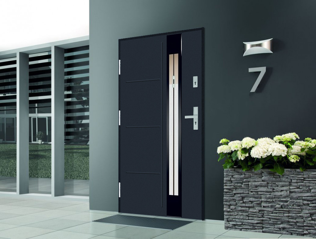 Дверь изготовлена из листового металла, покрытого декоративной пленкой ПВХ, благодаря чему она идеально сочетается с оконными рамами.