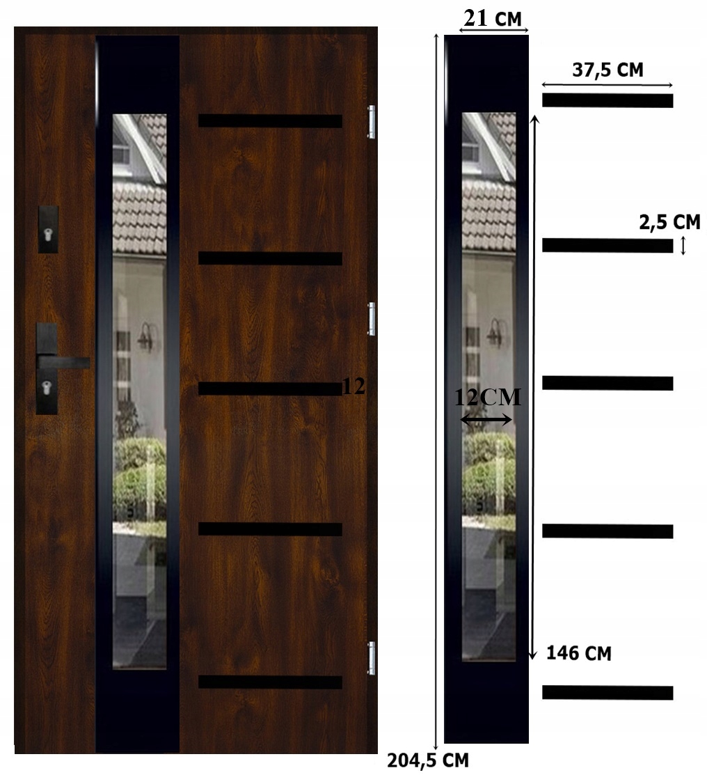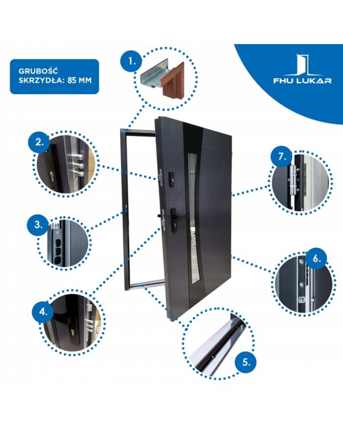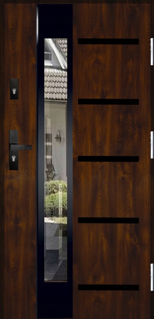 Изготовлены из очень качественной оцинкованной стали толщиной 0,6 мм, покрыты декоративной пленкой/шпоном ПВХ - с повышенной устойчивостью к погодным условиям и идеально сочетается с оконной фурнитурой польских производителей. Дверная коробка изготовлена из листового металла толщиной 1,3 мм, также оцинкована и покрыта тем же шпоном, что и дверное полотно.