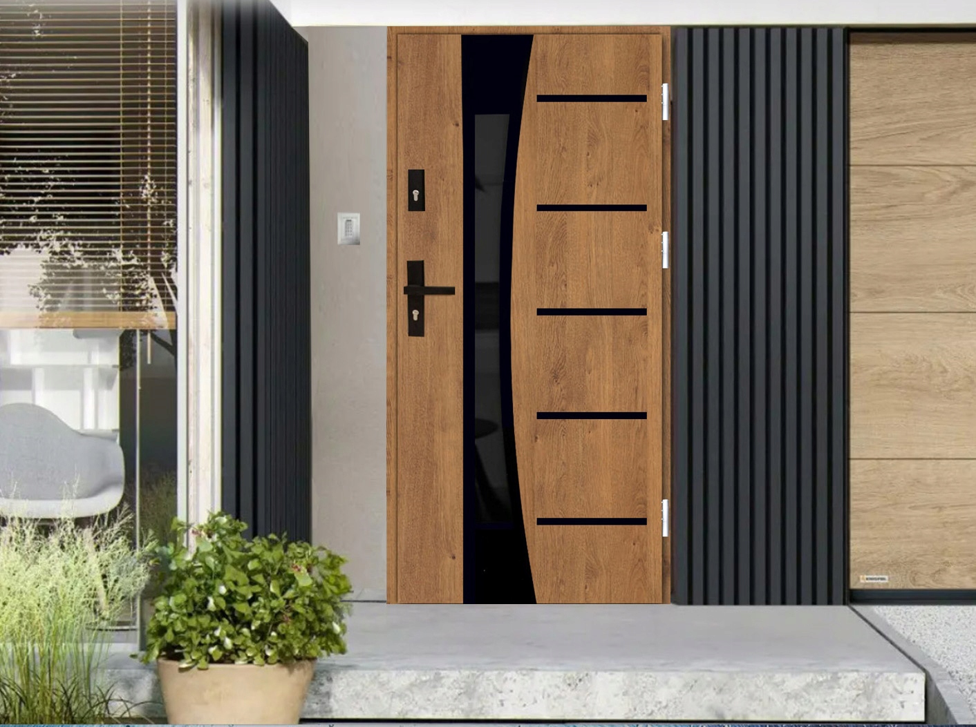 Цвет ЧЕРНАЯ СТРУКТУРА (слева) + цвет ДУБ БОЛОТНЫЙ (справа) Остекление DARK REFLEX: