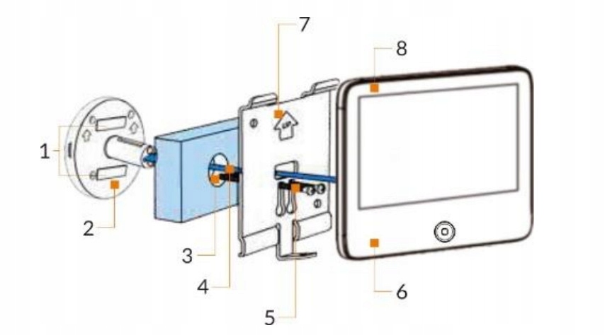 5: Аккуратно повесьте монитор на металлический кронштейн, соблюдая осторожность, чтобы не чтобы повредить кабель. Снимите защитную пленку с монитора и объектива камеры.