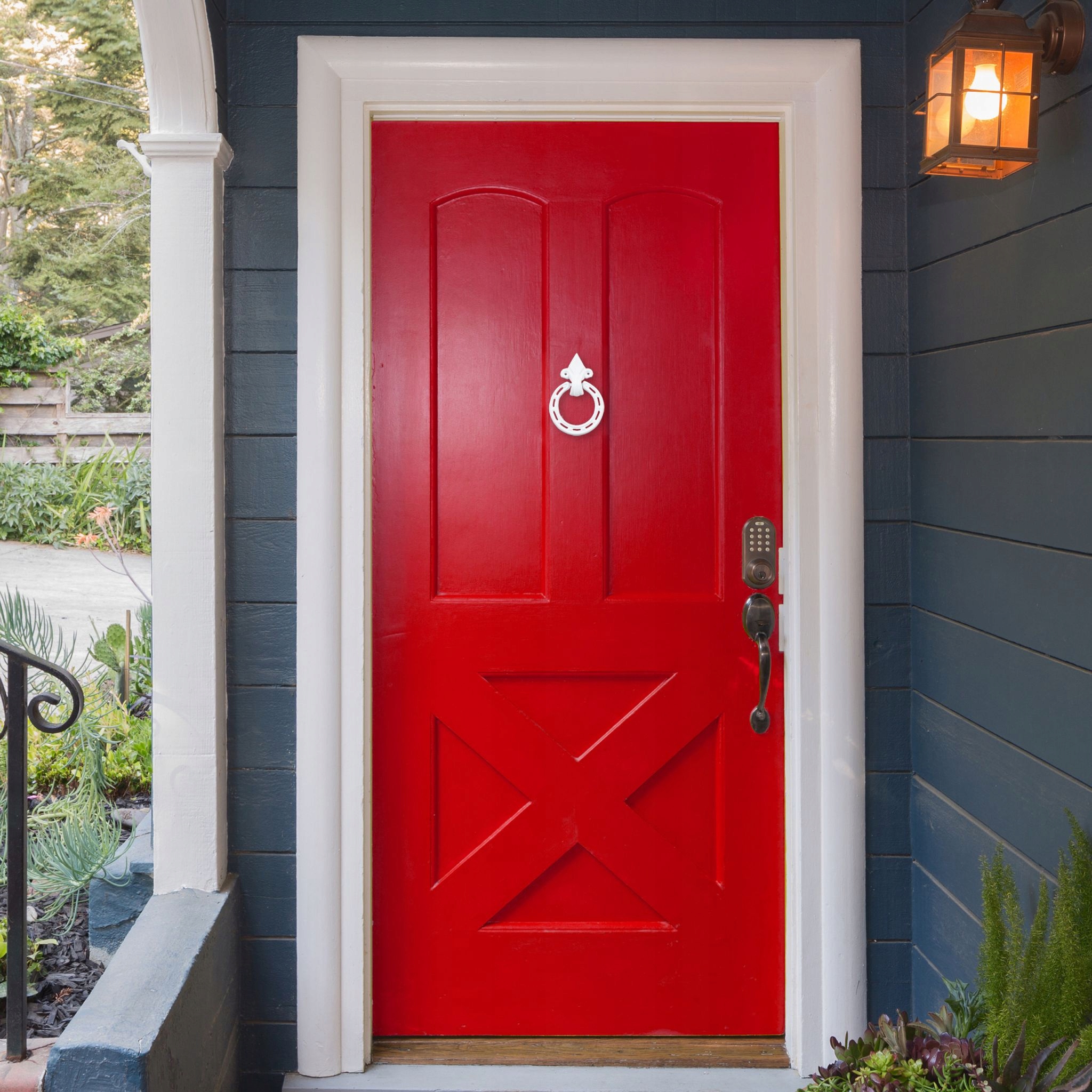 На темной двери стук-кольцо может создать интересный контраст и тем самым впечатляюще продемонстрировать, что привлекательный дизайн дома не обязательно должен начинаться за входной дверью.