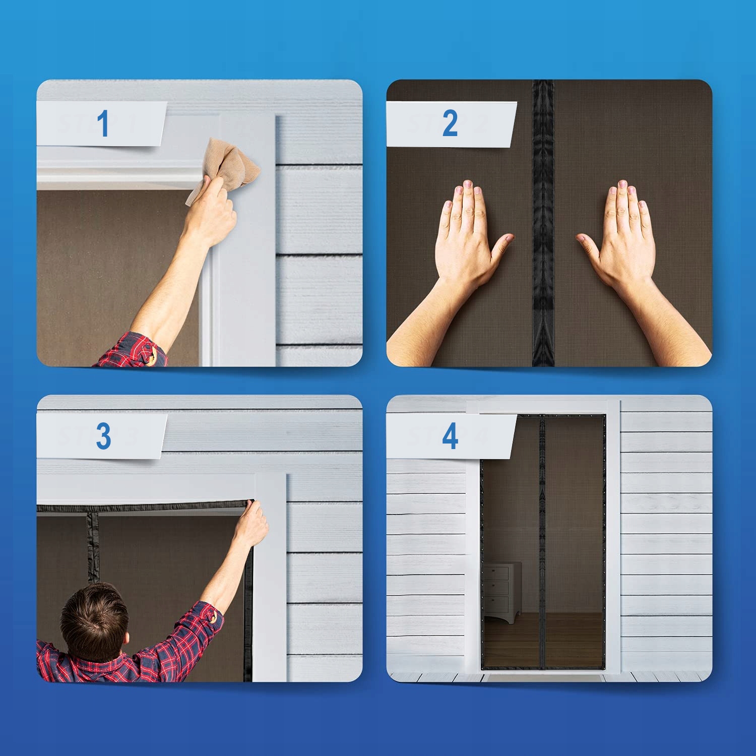 Встроенные магниты в системе закрытия позволяют открывать и закрывать москитную сетку без использования рук. Это решение идеально, когда у вас заняты руки, но оно также принесет пользу животным. Нет необходимости постоянно впускать и выпускать их, животные просто проходят сквозь москитную сетку, а встроенные магниты сделают все остальное.