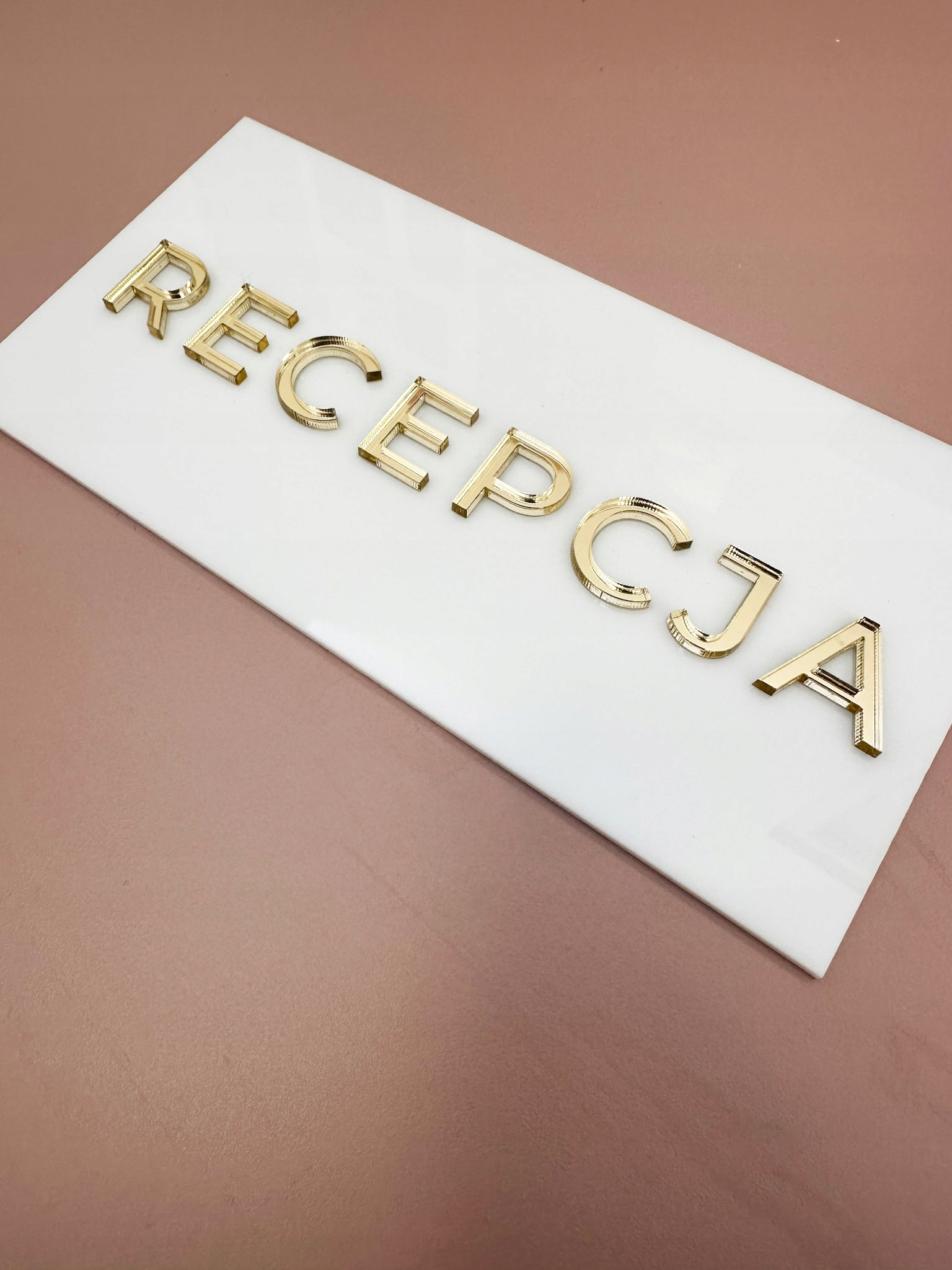 "Прием" Пластина - белое плексигол с золотой, зеркальной надписью