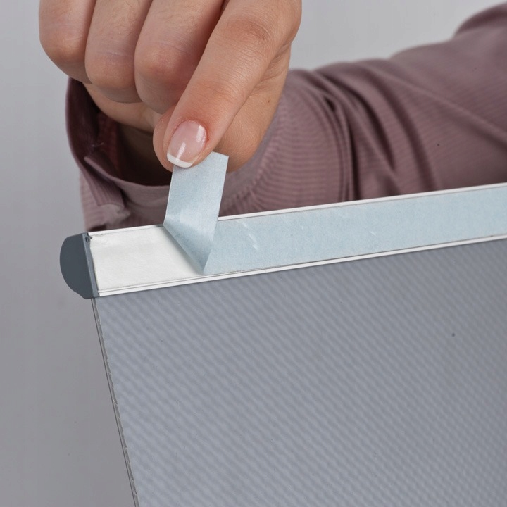 На двусторонний скотч – он уже приклеен к пластинам.