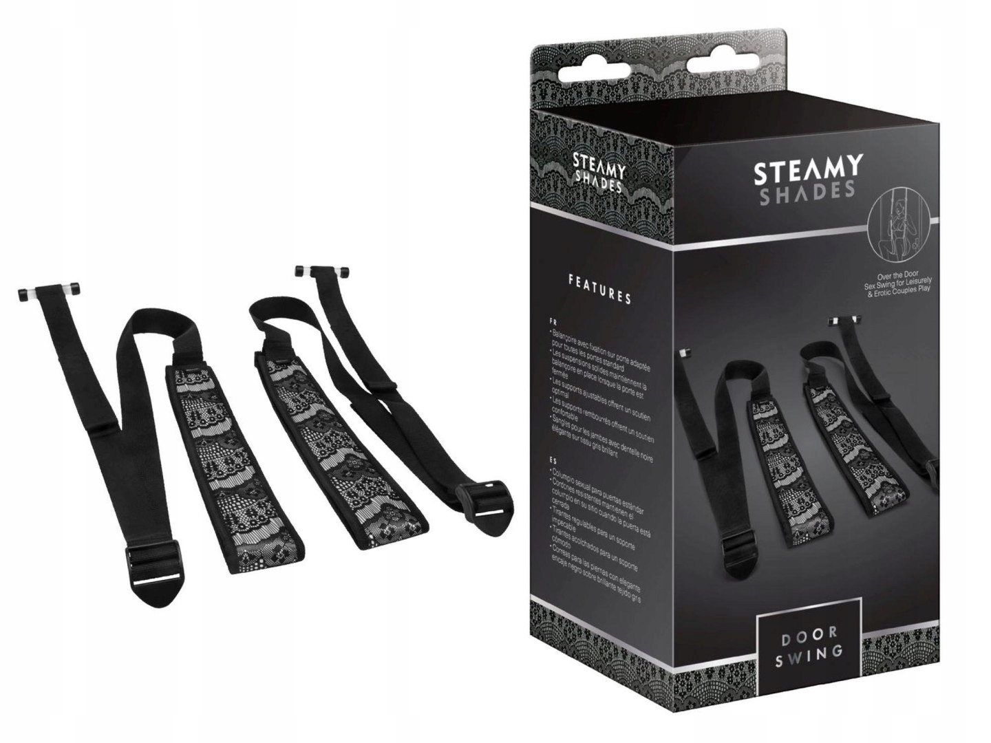 Сексуальные качели надежно висят над любой стандартной дверью, прочные штанги удерживают качели над каждой закрытой дверью, регулируемые ремни обеспечивают оптимальную поддержку, мягкие ремни обеспечивают удобную поддержку, ножные ремни имеют элегантную накладку из прозрачного черного кружева на блестящей серой ткани. Качели (100% полиэстер) Ремни (100% полипропилен) Регуляторы (100% АБС-пластик) Крючки (100% акрил)
