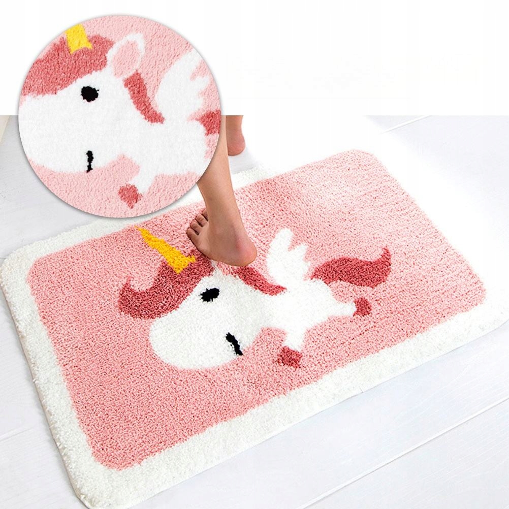 ✅Изготовленный из прочного материала, он прочный и впитывает воду. Можно использовать в ванной, кухне и гостиной в качестве придверного коврика. Стильный и креативный розовый рисунок единорога на поверхности делает его более милым и забавным. Вы можете разместить его перед дверью.