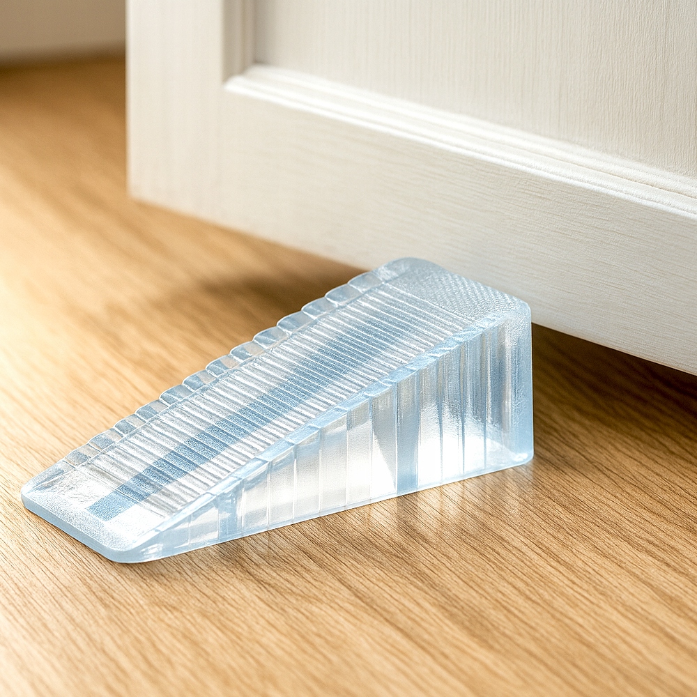 Прозрачный дверной клин KANZA из гибкого силикона – практичное и эстетичное решение для дома, офиса или гостиницы. Благодаря своей форме он эффективно запирает двери, не сверля, не создавая шума и не повреждая пол. 💎✨