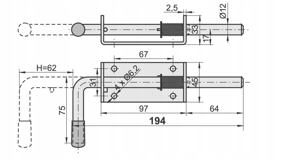 ДВЕРНИЙ ЗАМОК 200 мм З ЗАСІБКОМ, ЗАСІБКА З ПРУЖИНОЮ, ОЦИНК.