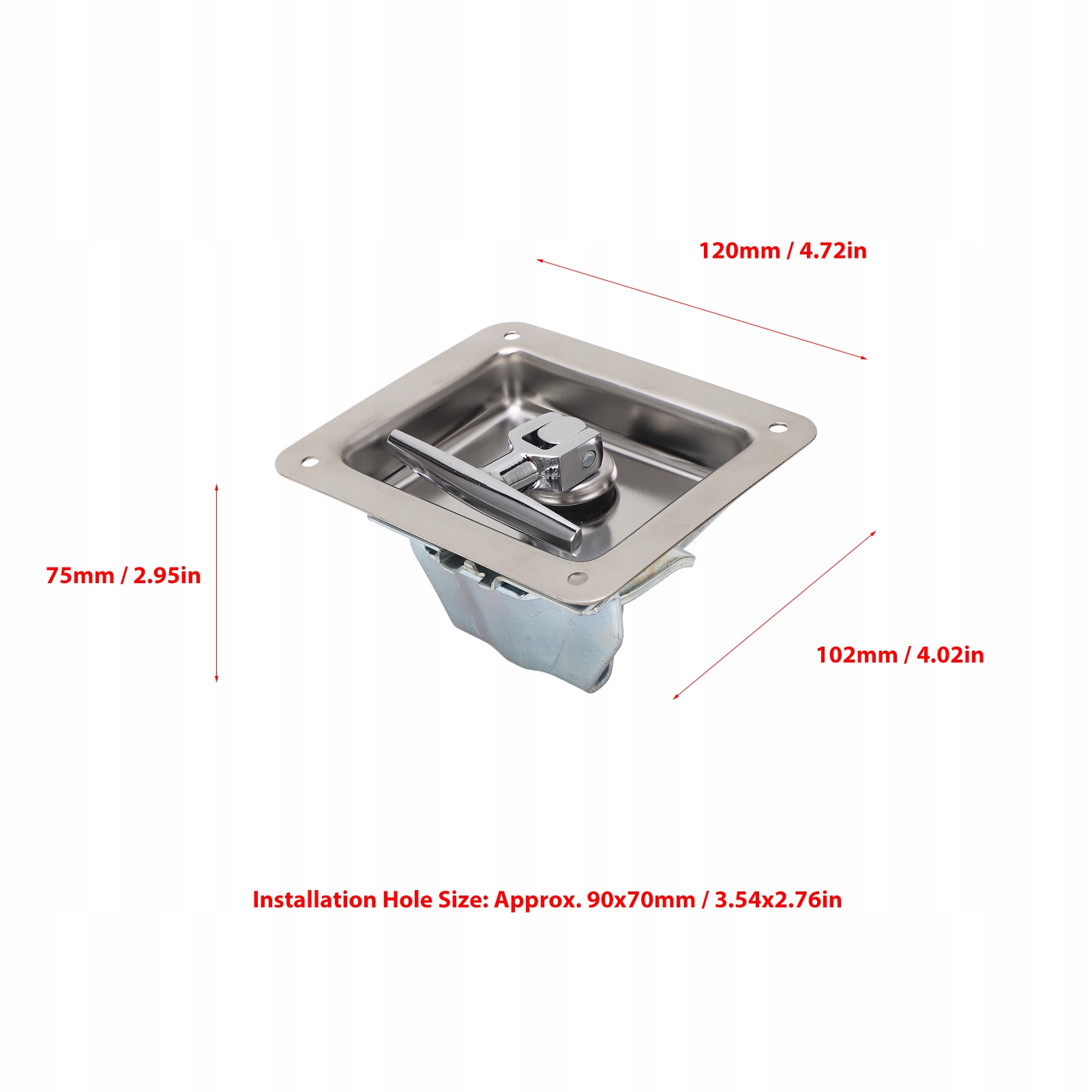 Тип изделия: защелка с Т-образной ручкой. Материал: нержавеющая сталь. Модель: TYFC01. Размер: около 120x102x75 мм/4,72x4,02x2,95 дюйма. Размер установочного отверстия: около 90x70 мм/3,54x2,76 дюйма