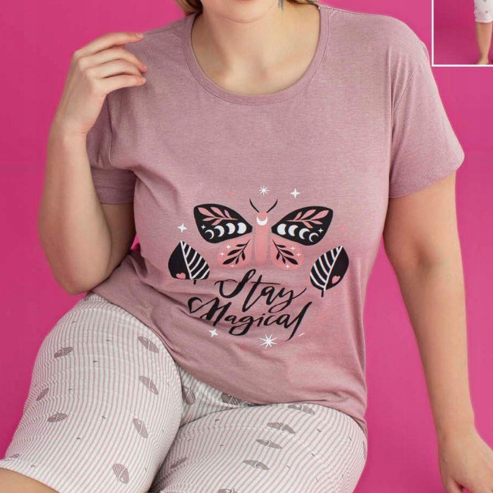 Мы представляем женскую пижаму , предназначенную для женщин, которые ценят комфорт и стиль во время сна и время отдыха дома. Сделано в 100% хлопка , обеспечивает превосходную воздухопроницаемость и мягкость, что делает каждый момент в этой пижаме становиться удовольствием. Элегантная пореза и осторожная отделка делают нашу пижаму не только удобной, но и модной, идеально подходящей для последних тенденций в ночной одежде.