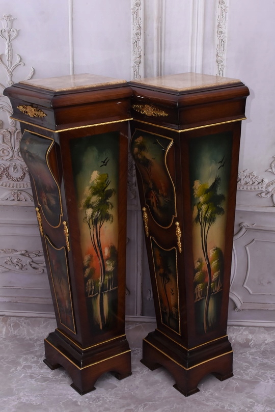 Два инкрустированных постамента с картинами - колонны, постаменты, мраморный верх