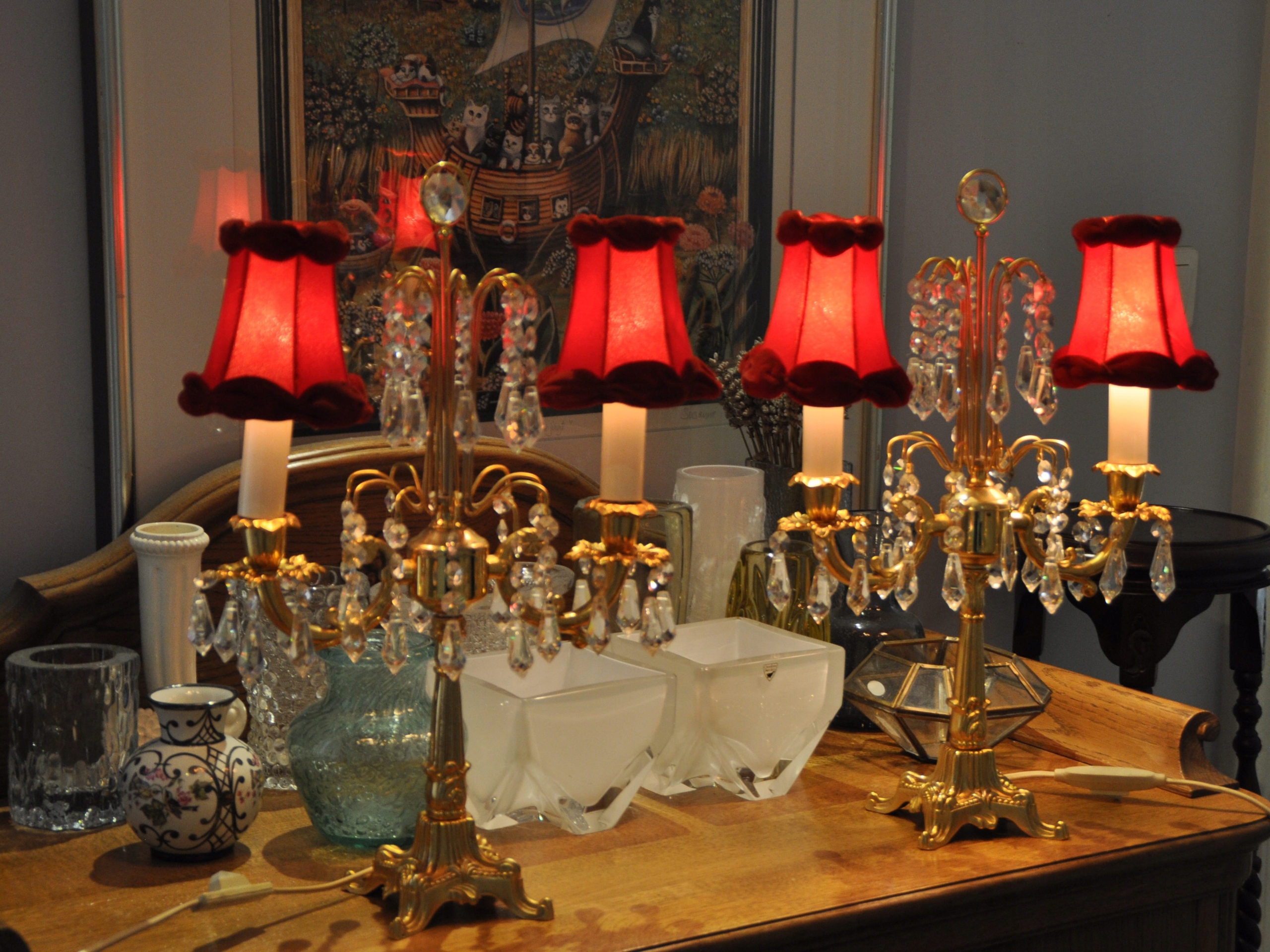 Две старые электрические лампы высотой 45 см. x 34 см.