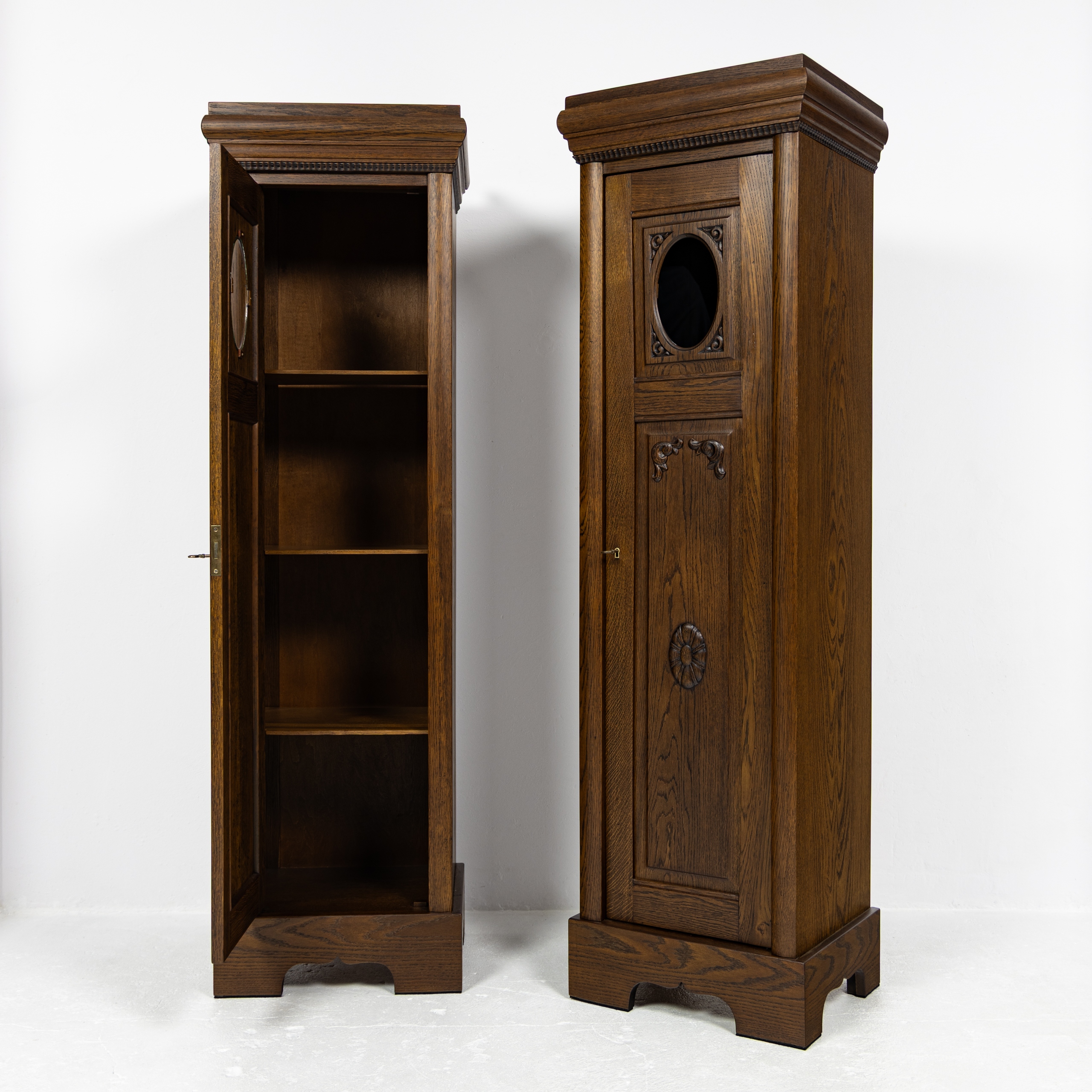 Два стильных дубовых стойки антиквариата дуб -приятель старые узкие шкафы стойки