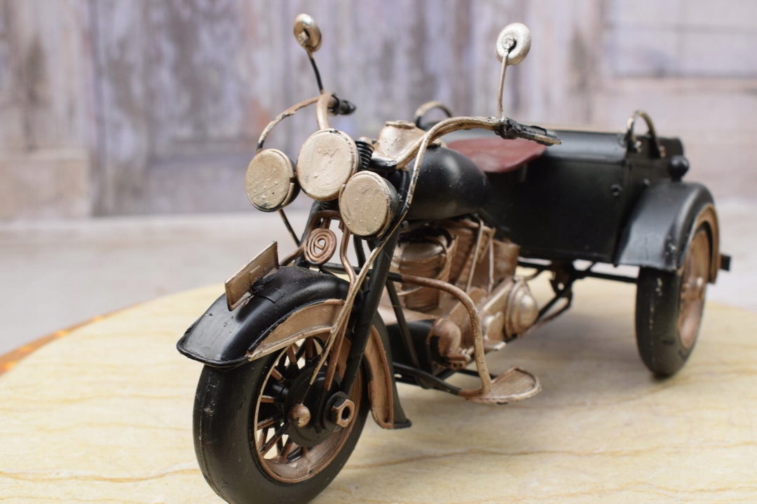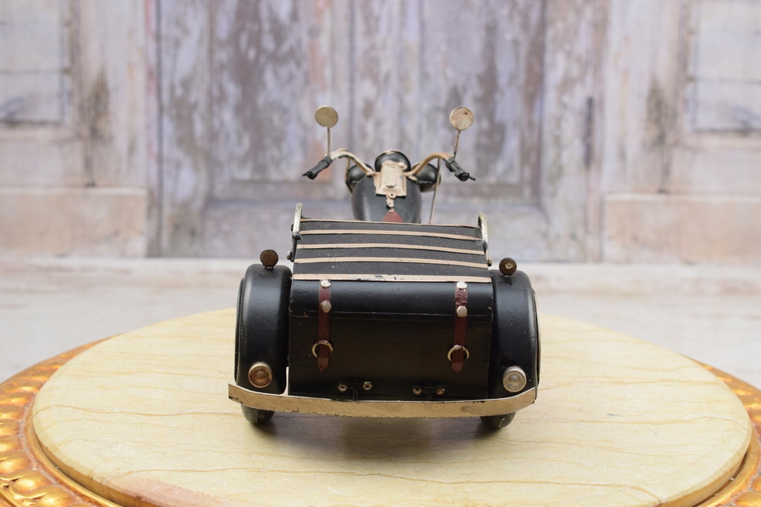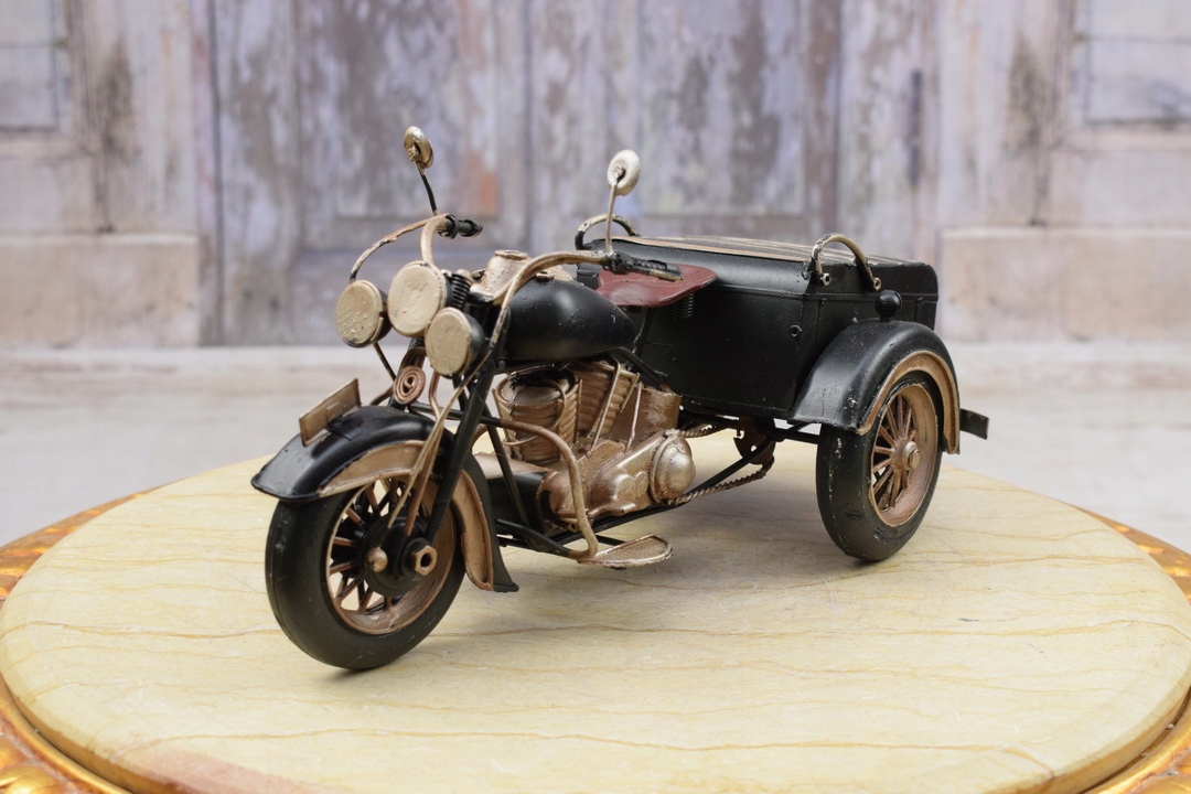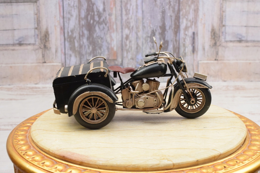Мотоцикл имеет красивый, интенсивный черный цвет, который привлекает внимание и выделяется среди других игрушек. Его дизайн и пропорции представляют собой верное воспроизведение классических мотоциклов, которые можно найти на дорогах в старые времена.