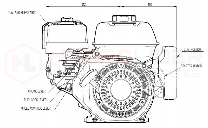 - Тип двигателя: четыре -удар, высокий -клапанный OHV, воздух -кладовый MM