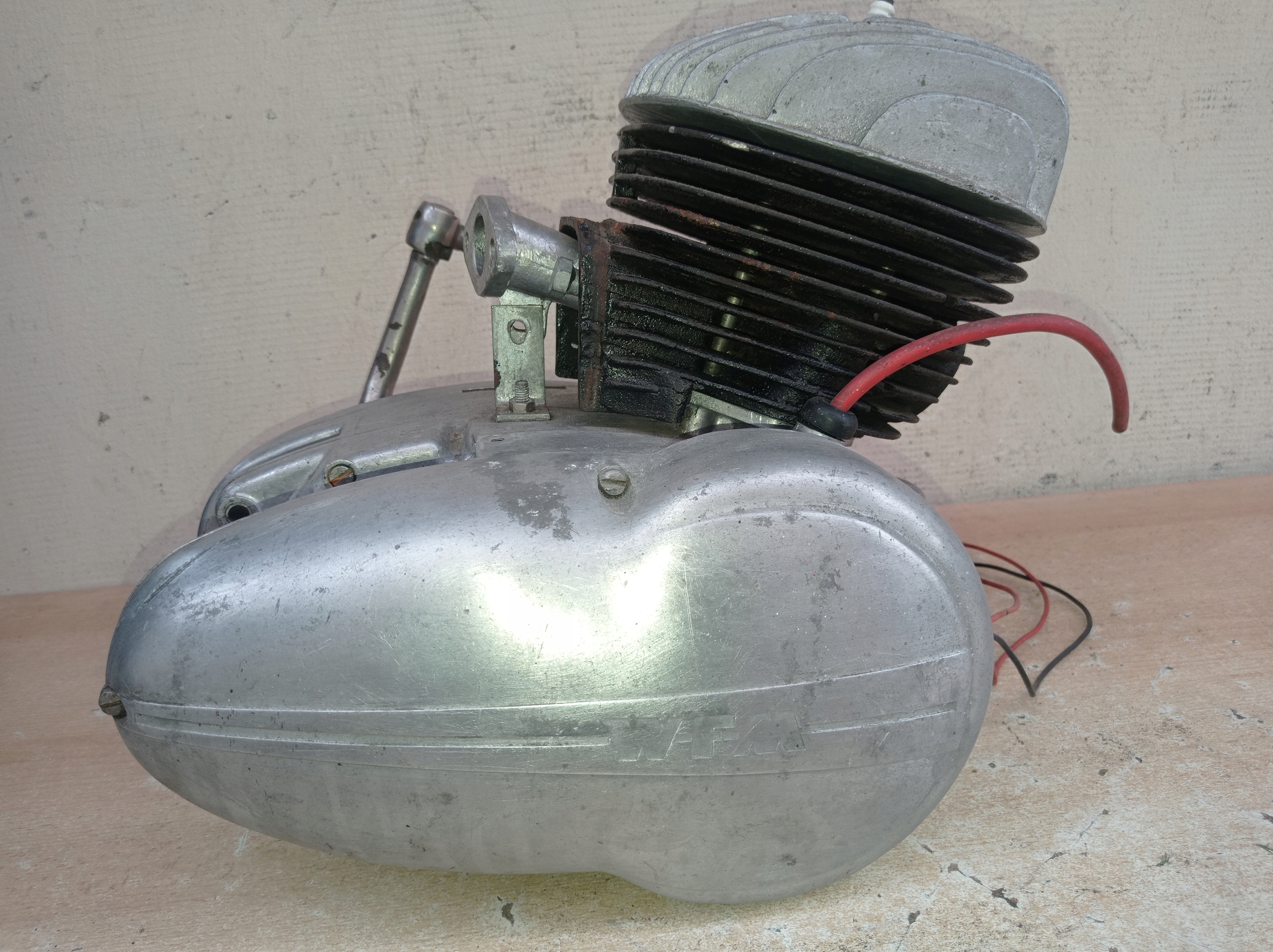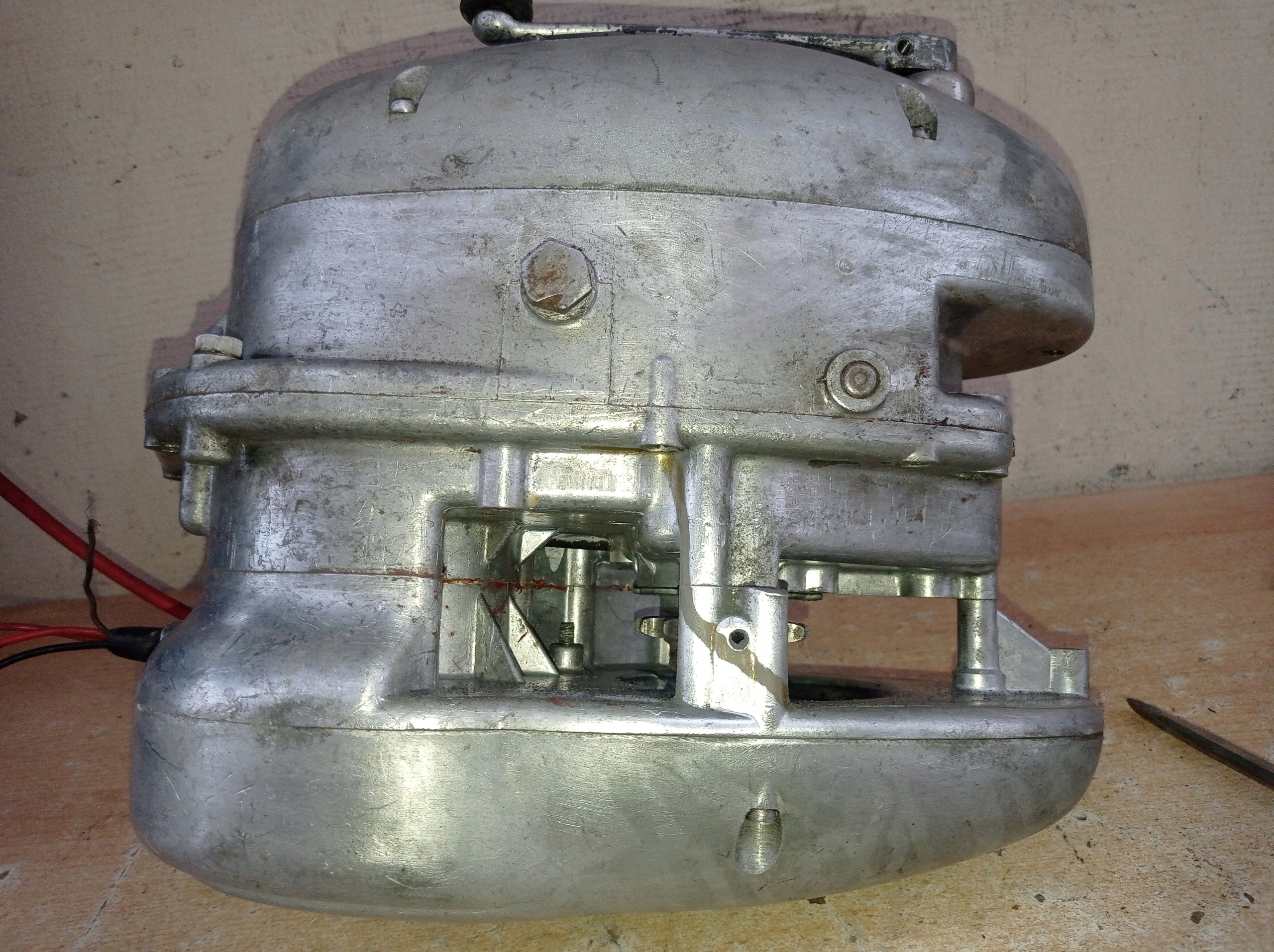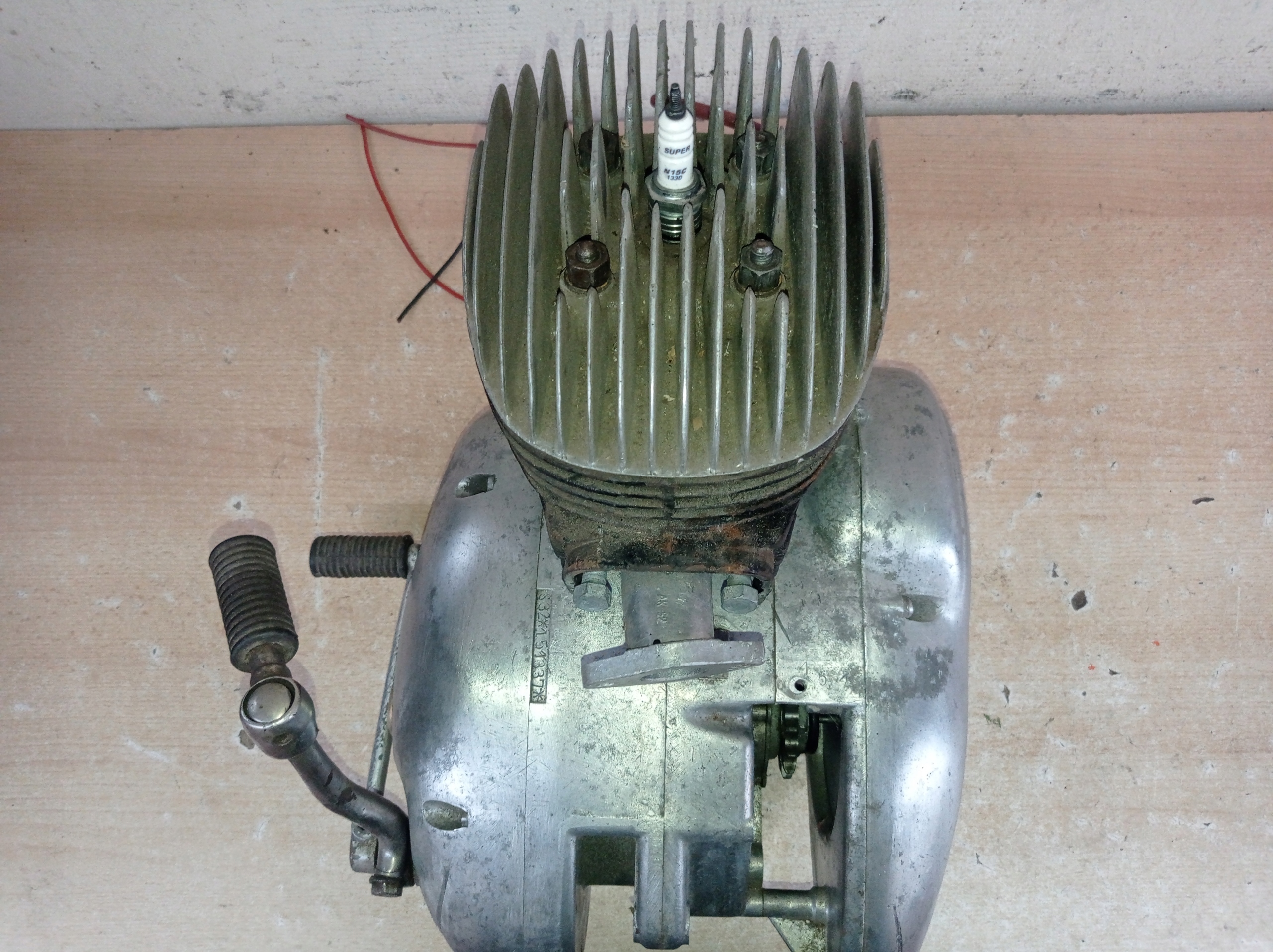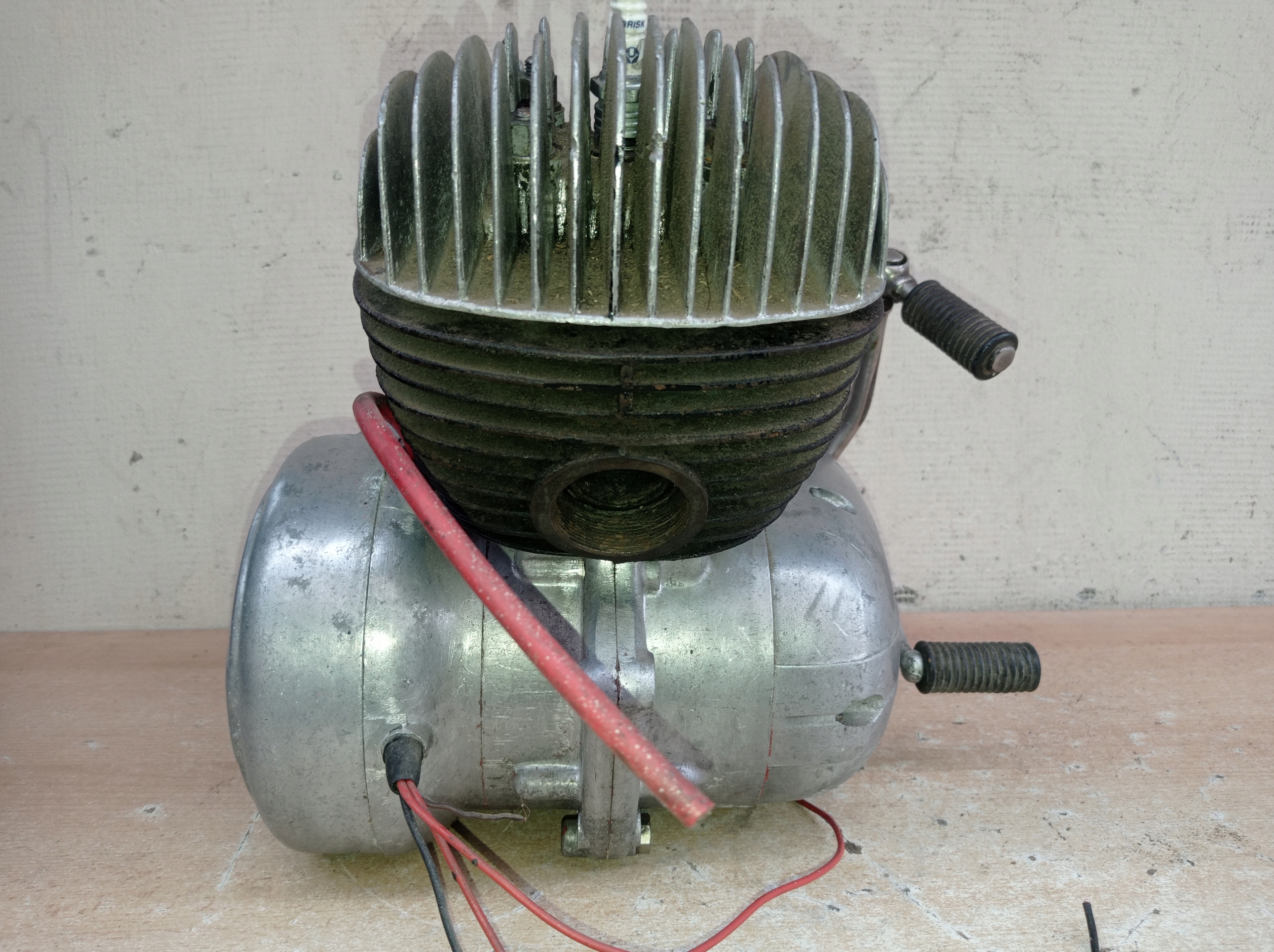 Для проверки перед выставлением на продажу цилиндр был снят и механик подтвердил, что установлен новый оригинальный поршень того периода, цилиндр отполирован и вал тоже оригинальный, без видимого люфта.