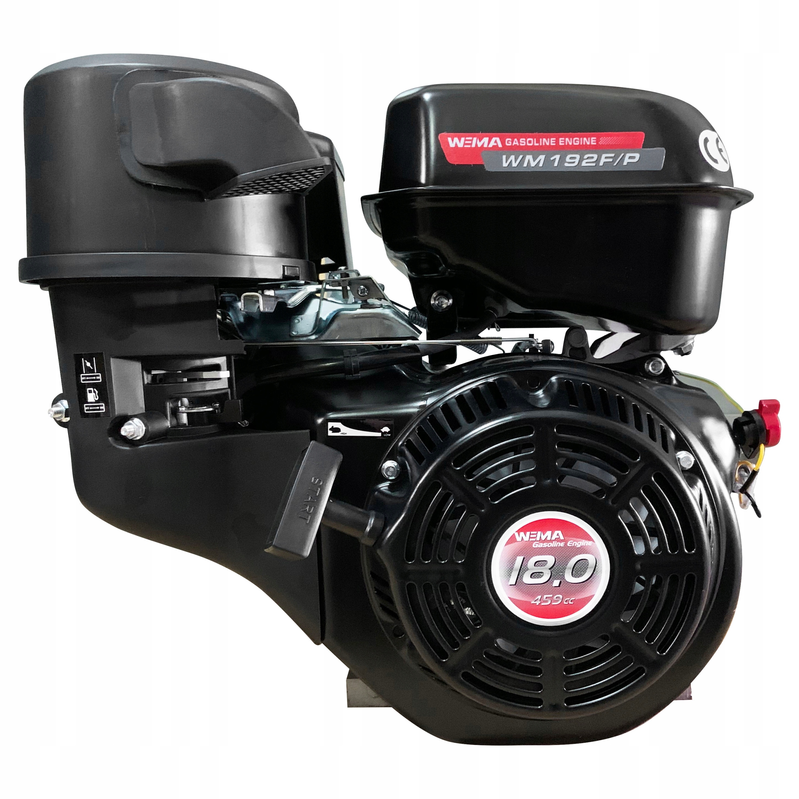 Weima WM192F — одноцилиндровый, четырехтактный бензиновый двигатель с воздушным охлаждением. двигатель. Максимальная мощность двигателя составляет 18 л.с., а удельный расход топлива — 374 г/кВтч. Топливный бак имеет емкость 6,5 литров, что позволяет осуществлять непрерывную работу до 1,5 часов без дозаправки.