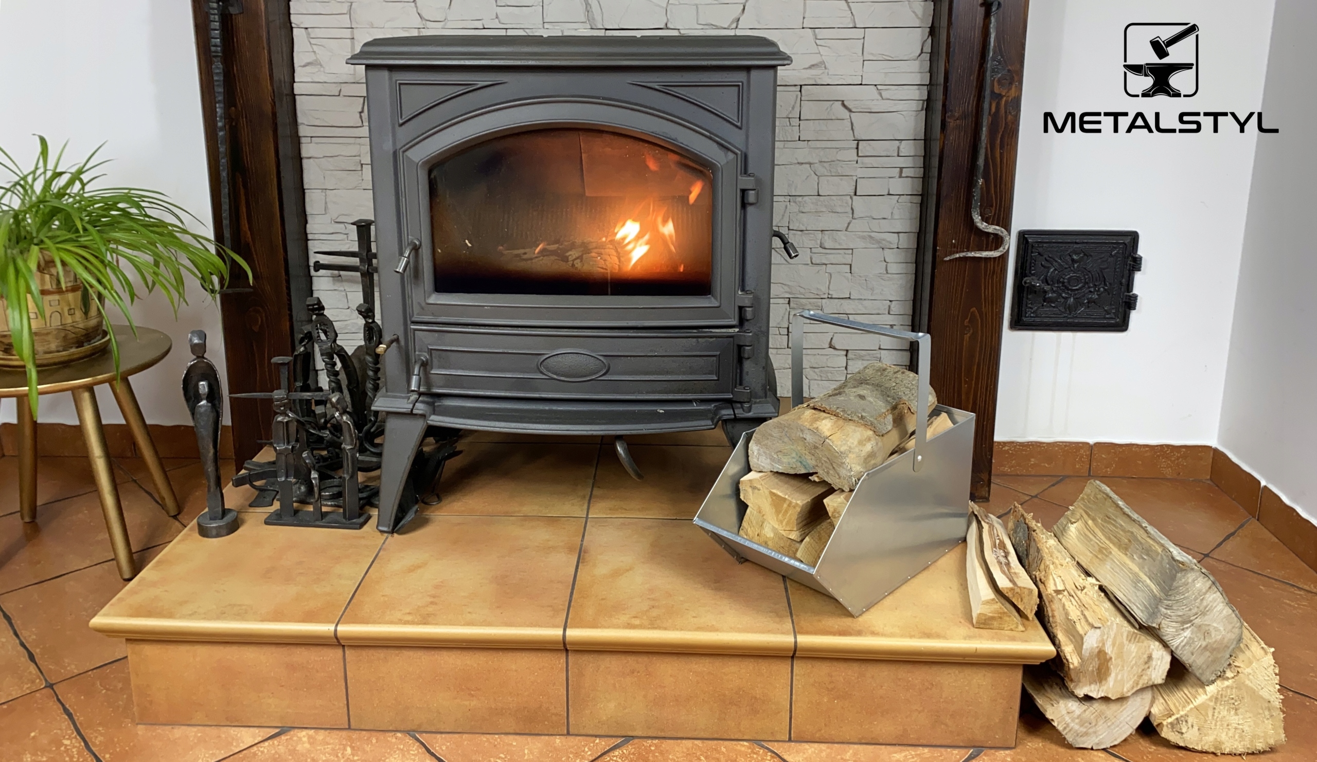 Угольная горелка из оцинкованной стали с лопатой, кочергой, скребком + SADPAL Катализатор горения сажи