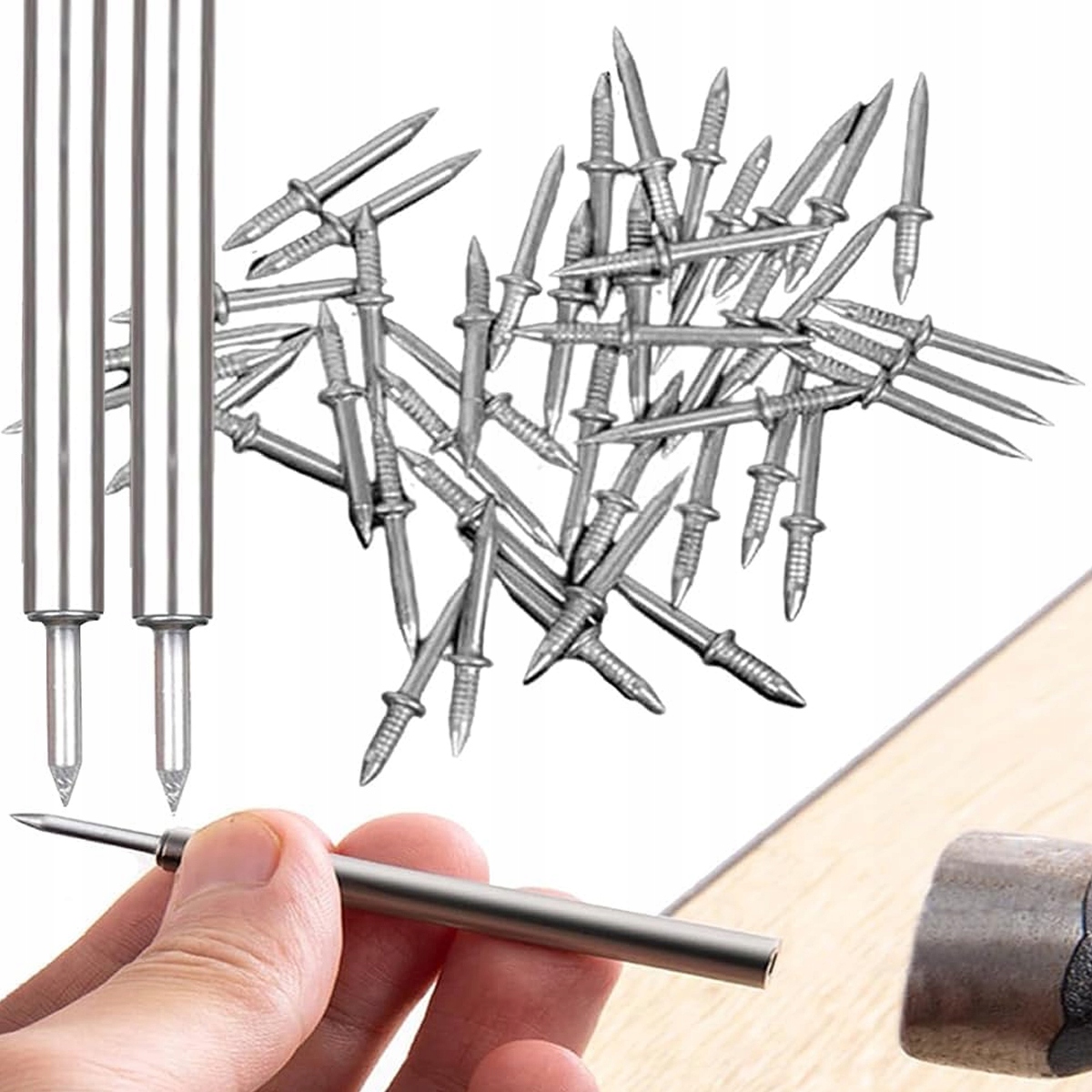 🟢 【 Инструмент для головок】: Этот инструмент для головок для гвоздей позволяет вставлять гвозди в розетки и вбивать их прямо в стену.