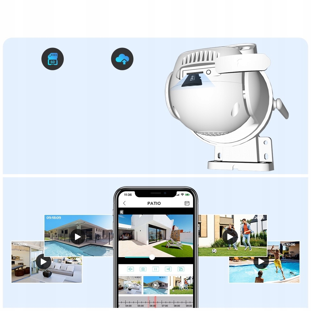 Изображение можно сохранить на карту памяти или в облако (оплачивается дополнительно). Камера поддерживает карты памяти micro SD объемом до 128 ГБ.
