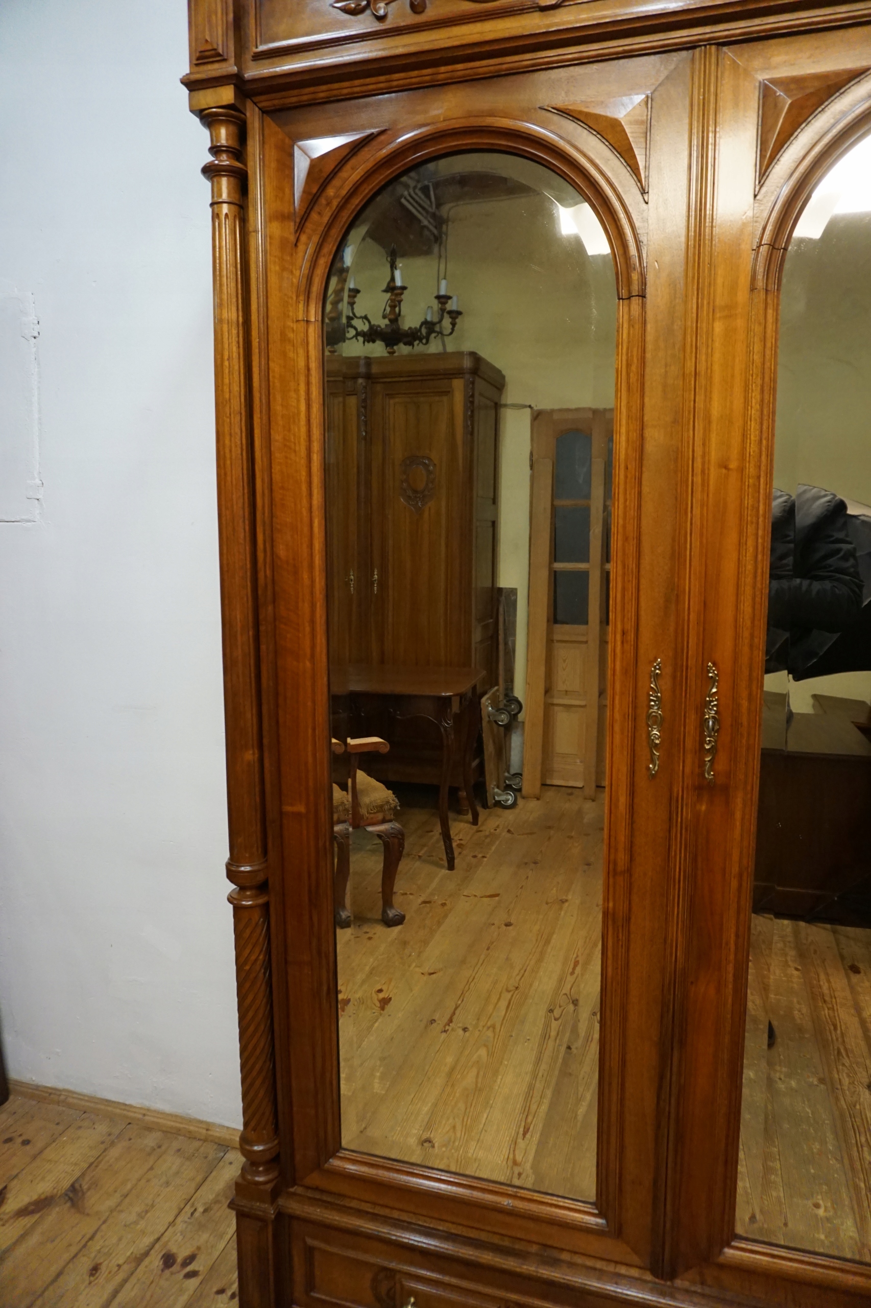 ДВОЙНОЙ ДВОРЕЦОВЫЙ ШКАФ С ЗЕРКАЛАМИ ФРАНЦИЯ ОРИГИНАЛЬНЫЙ МАССИВ ОРЕХА