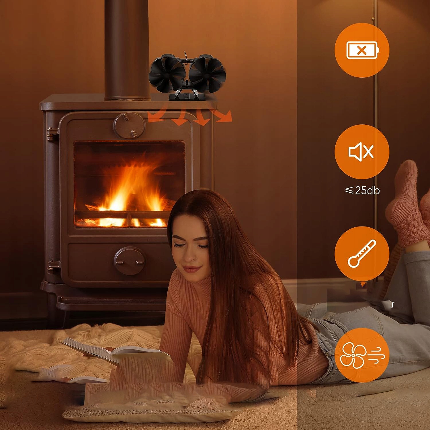 } 【Не -электрический вентилятор камина Деревянной плитой, преобразование поглощенного тепла в кинетическую энергию. Когда температура достигает 212 ° F, вентилятор древесной печи вращается, распределяя горизонтально теплый воздух вокруг окружающей среды