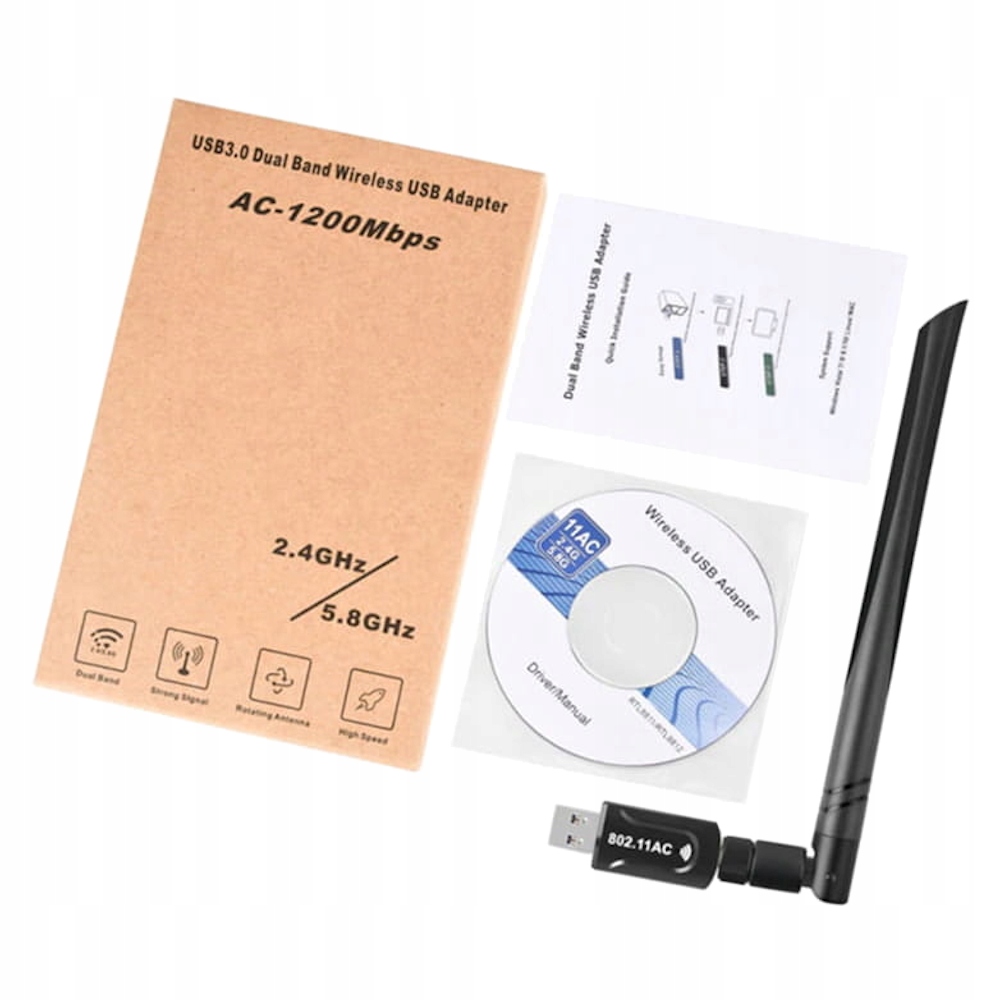 Двухдиапазонный адаптер Wi-Fi на USB 3.0 переменного тока, 1200 Мбит/с, 5 ГГц