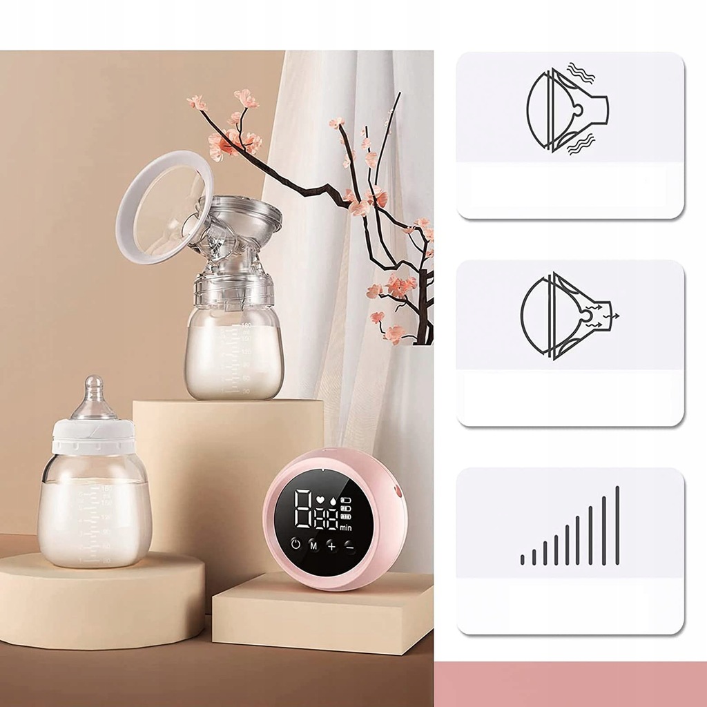 - Молокоотсос имеет 2 режима и 9 уровень всасывания на выбор. Закрытая система массирует и стимулирует грудь перед сцеживанием, что удобно и безболезненно. Вы можете выбрать нужный режим и уровень.