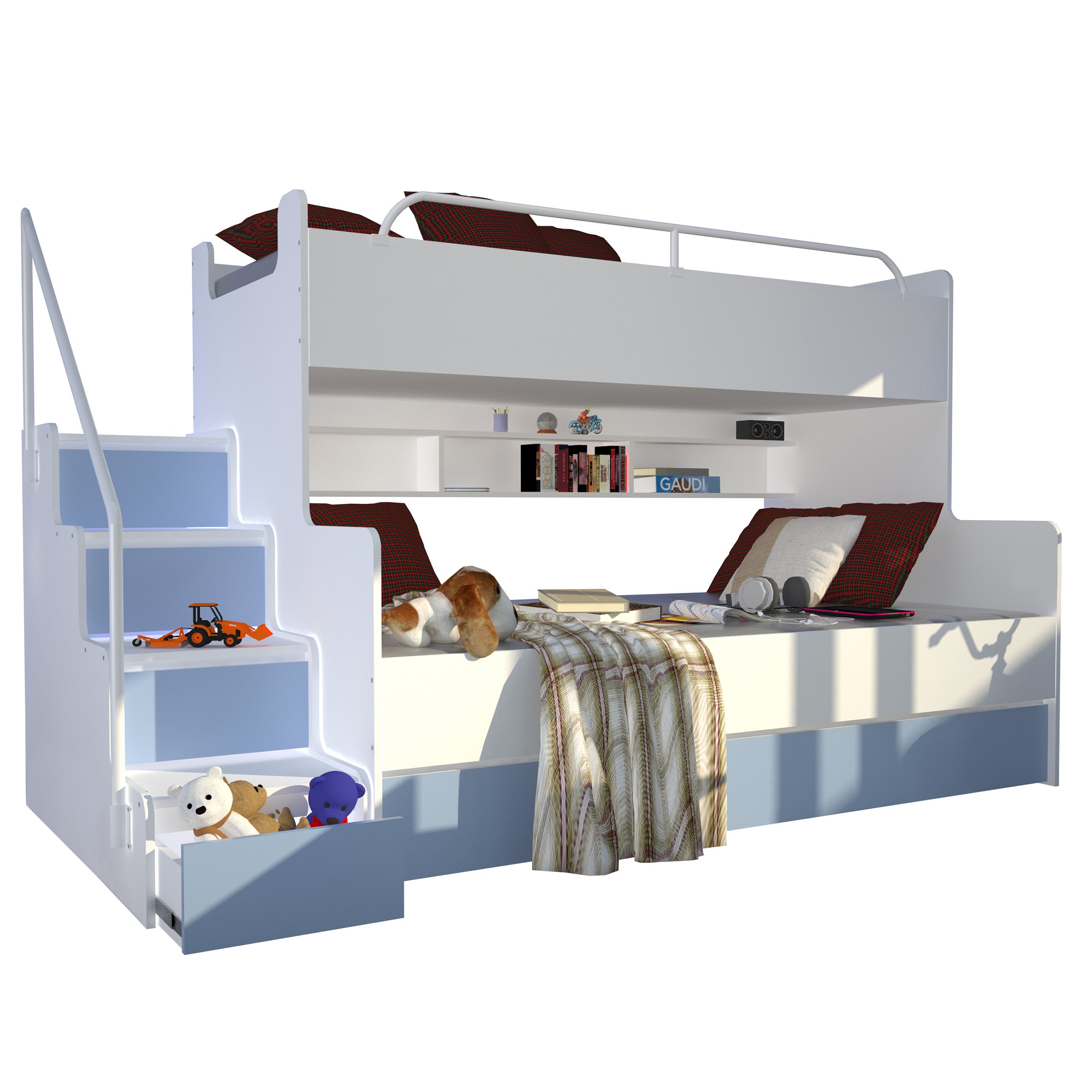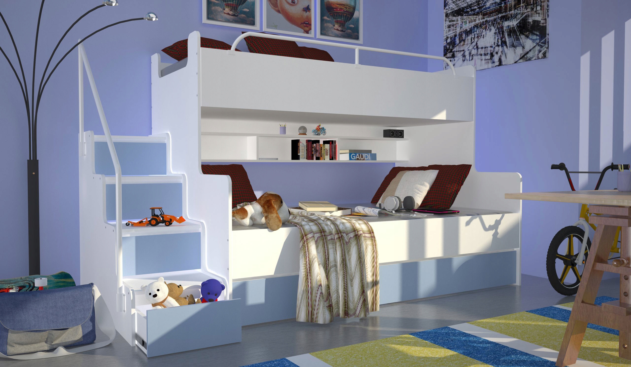 MAGNUM 3 — красивый современный дизайн, подходящий для любого помещения. Матовые фасады, доступные в одиннадцати различных цветах, добавляют шарма и характера. Кровать полностью персонализируема – ступеньки можно установить с левой или с правой стороны в зависимости от ваших предпочтений.