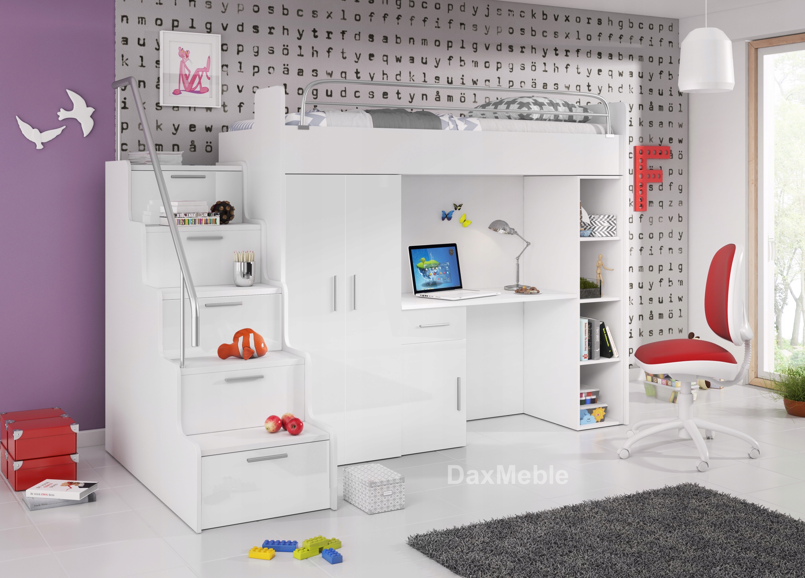 Двухъярусная кровать-EDEN 4S письменный стол, шкаф, 7 цветов