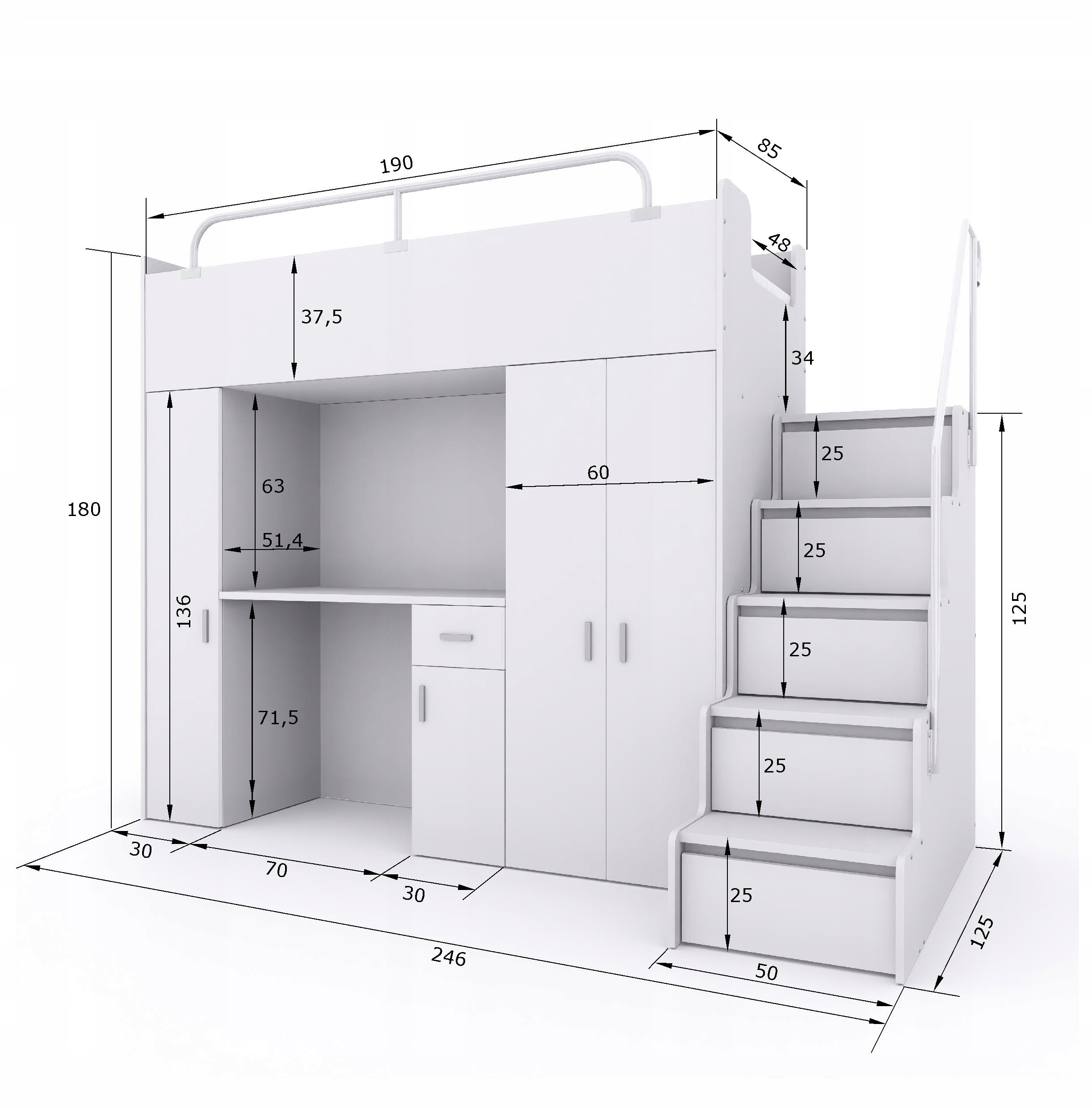 JSM5 двухъярусная кровать 80x190 с лестницей и письменным столом - ТУРЕЦКИЙ