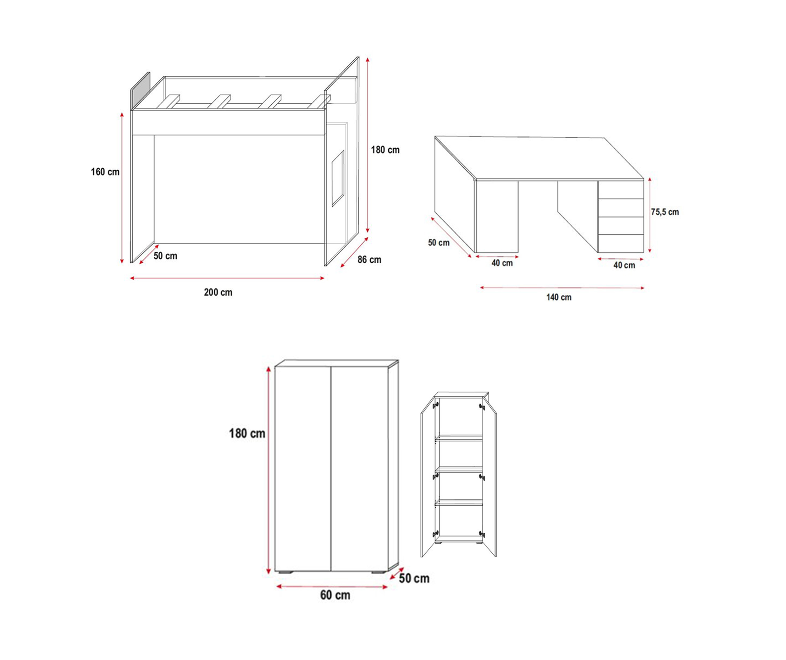 (верхняя спальная поверхность: 80x200 см)