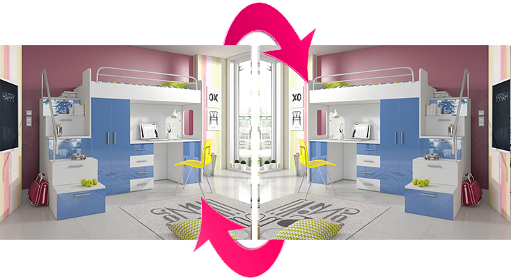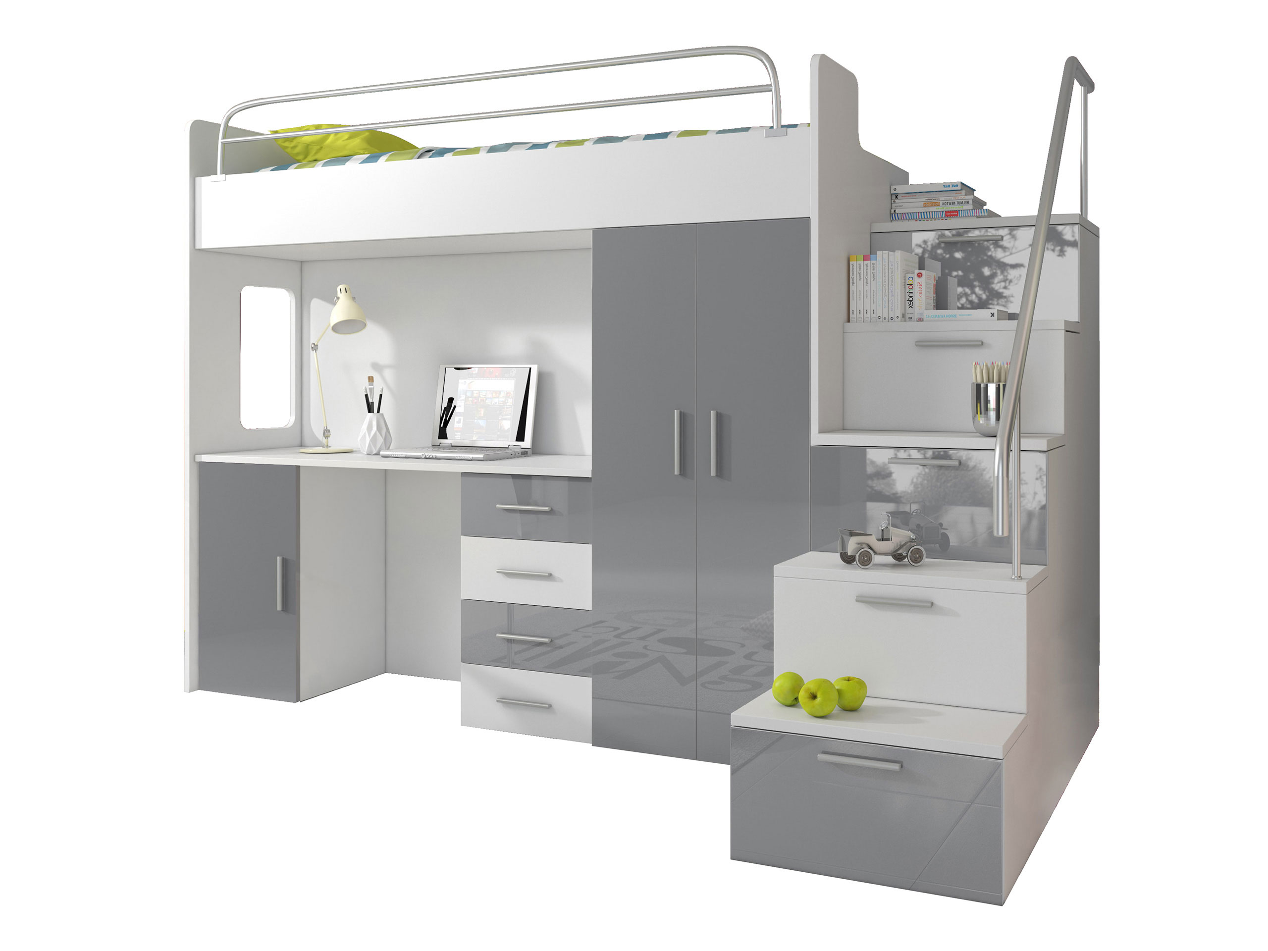 Кровать отличается современным дизайном и точным качеством изготовления, обеспечивая исключительно хороший сон и гарантию безопасности и уверенности в том, что ваш ребенок проснется отдохнувшим. Фасады гарнитура выполнены из глянцевого мебельного МДФ насыщенных цветов, что позволит подобрать мебель к любому помещению. Верхняя спальная поверхность и ступеньки рядом с кроватью оборудованы перилами, которые защитят ребенка от выпадения.