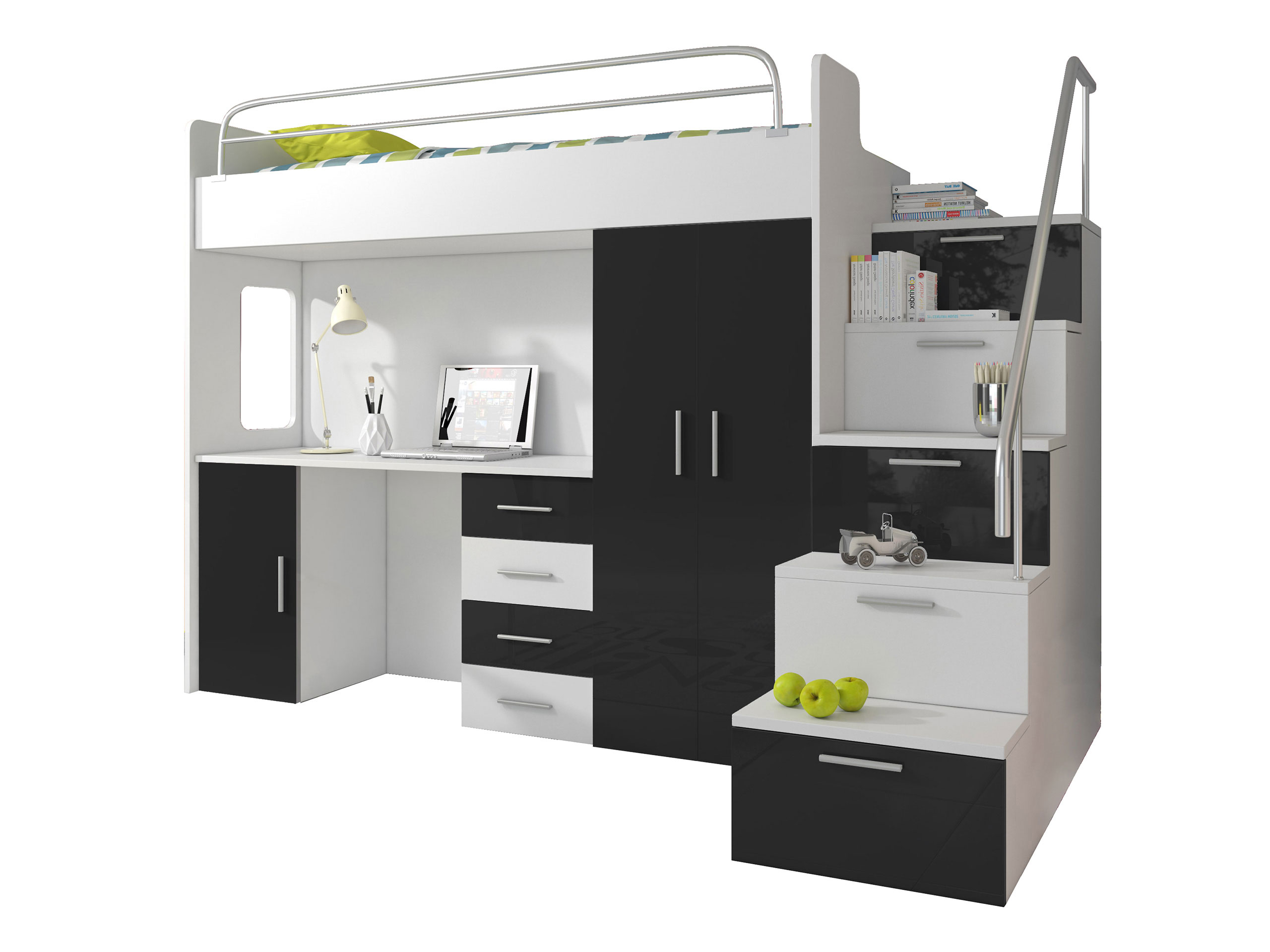 Кровать отличается современным дизайном и тщательной обработкой, обеспечивающей исключительно хороший сон и гарантию безопасности и уверенности в том, что ваш ребенок проснется отдохнувшим. Фасады гарнитура выполнены из глянцевого мебельного МДФ насыщенных цветов, что позволит подобрать мебель к любому помещению. Верхняя спальная поверхность и ступеньки рядом с кроватью оборудованы перилами, которые защитят ребенка от выпадения.