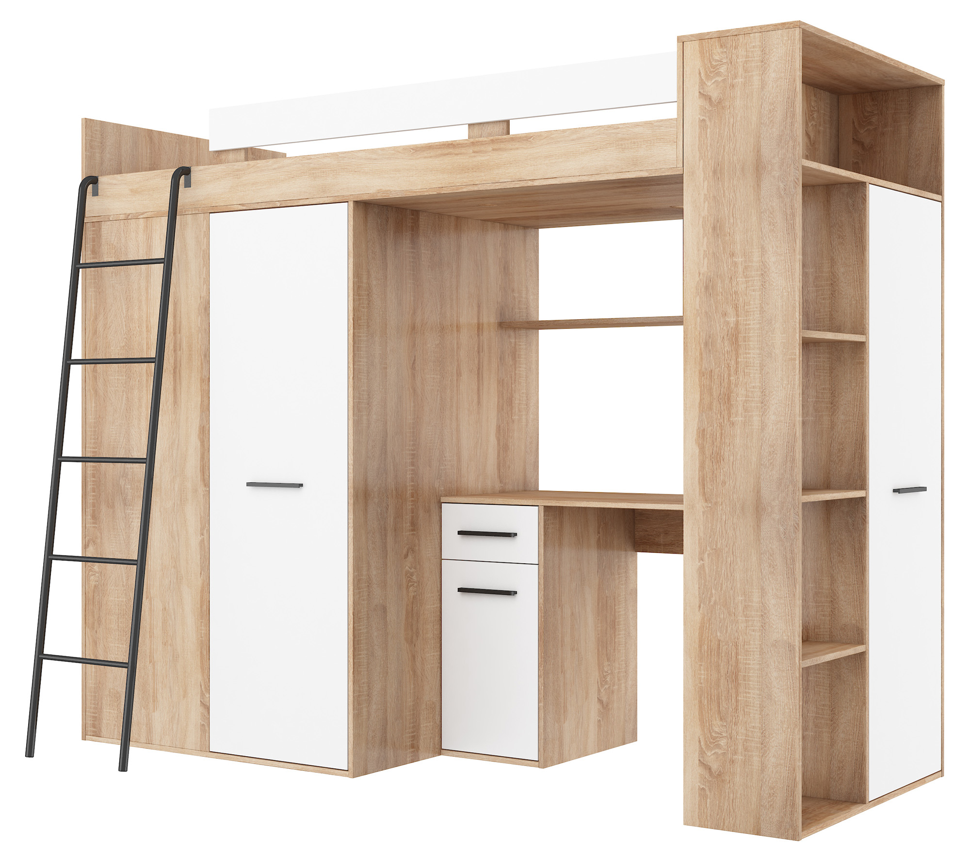 Кровать двухъярусная мезонинная VERANA правая Sonoma белая
