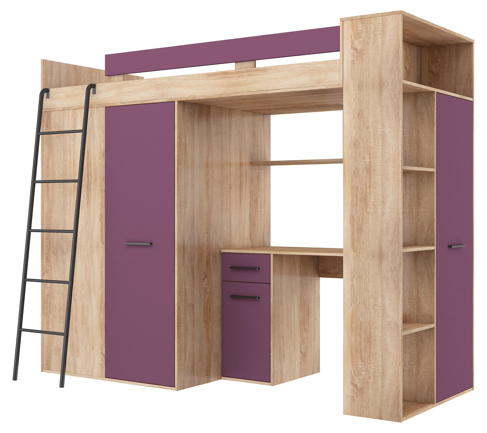 Мезонинная двухъярусная кровать VERANA P sonoma фиолетового цвета