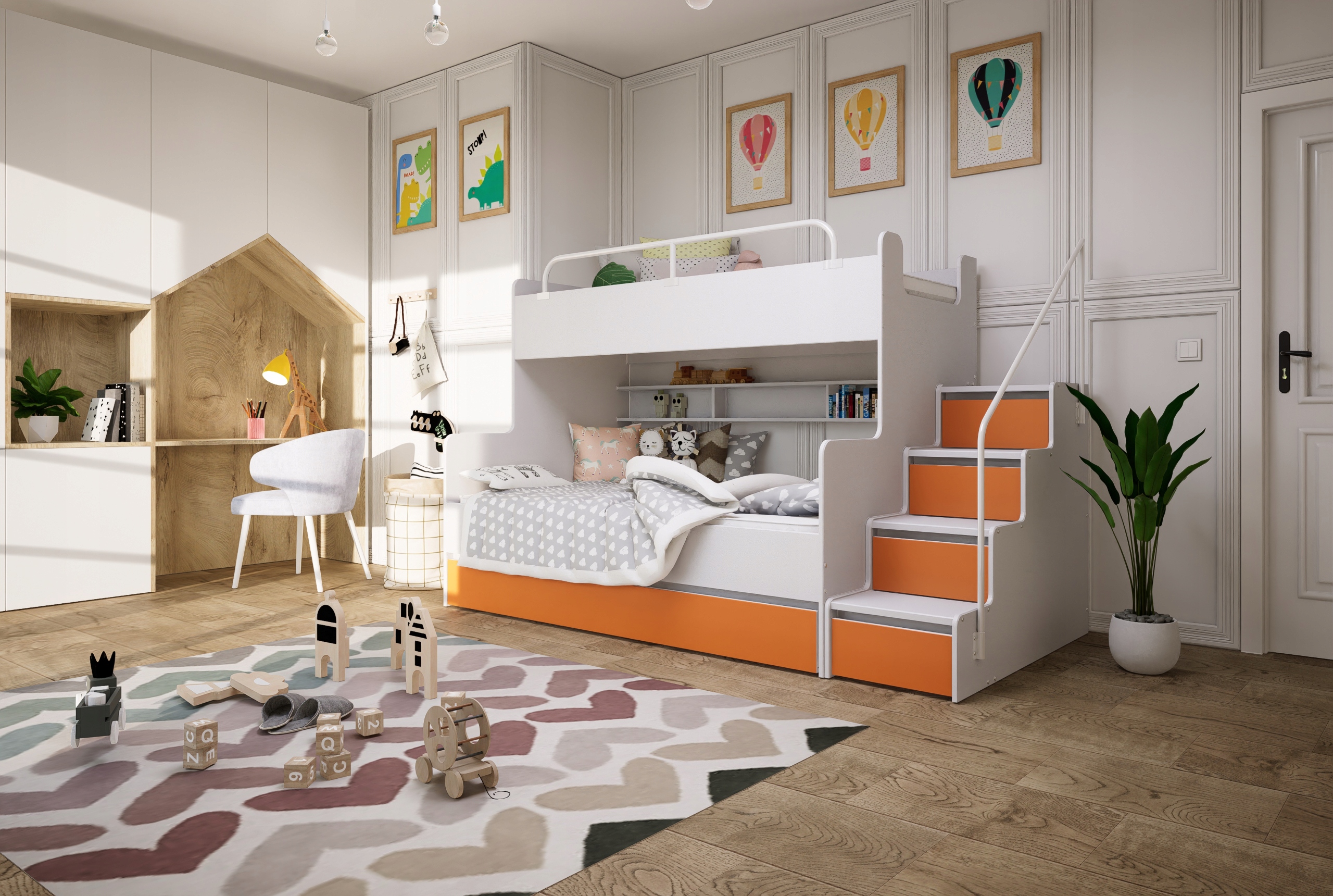 модель кровати, предназначенная для детской или подростковой спальни. Мебель сочетает в себе все важные характеристики, учитываемые при проектировании детской комнаты, а именно: