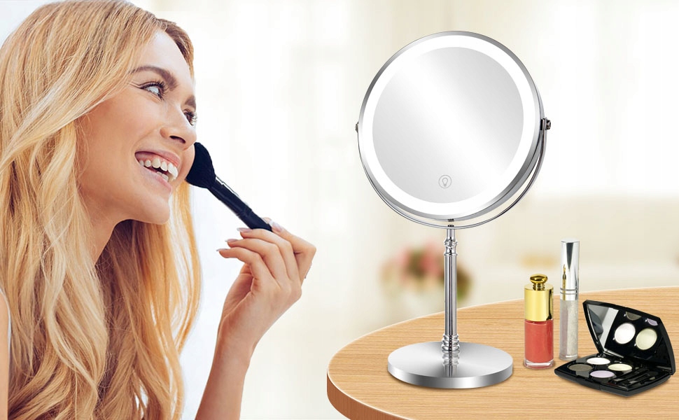 ✅【Элегантное и долговечное】 Зеркало с подсветкой элегантного классического дизайна, которое станет декоративным элементом вашего дома или подарком. Все рамы и основания изготовлены из хромированной нержавеющей стали. Устойчив к ржавчине и влаге. Прочная основа обеспечивает стабильность.