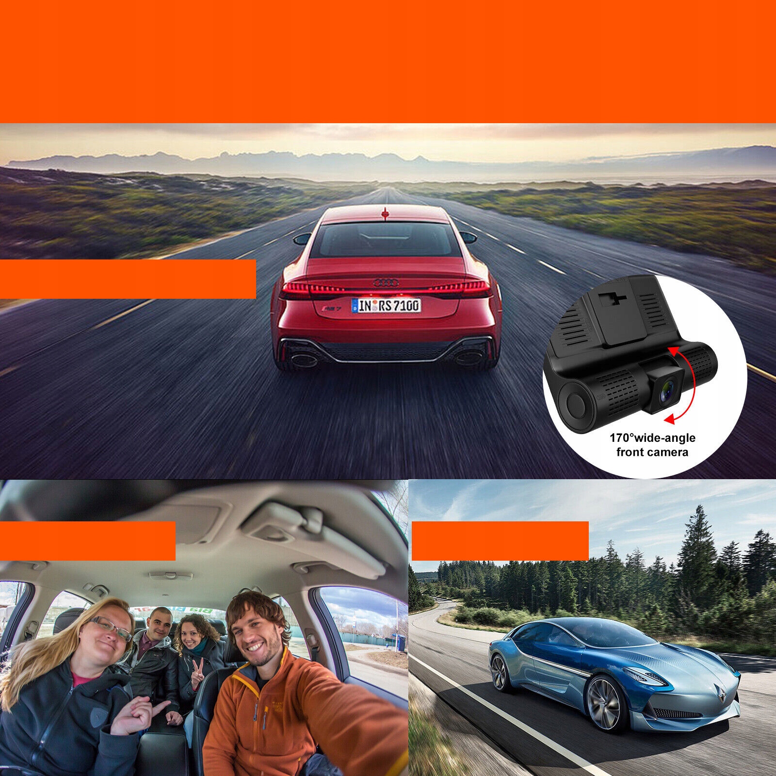 3-канальная передняя и задняя видеорегистратор предлагает широкоугольную переднюю камеру с углом обзора 170°, видеорегистратор с углом обзора 120° и заднюю камеру с углом обзора 140°. Контролируя переднюю, заднюю и внутреннюю часть автомобиля, видеорегистраторы могут предоставить достаточную информацию в случае наездов и аварий сзади.
