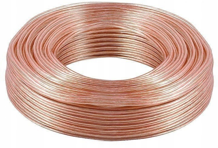 Акустический кабель с медными жилами, многожильный, повышенной гибкости. Общая изоляция обеих жил из прозрачного ПВХ.