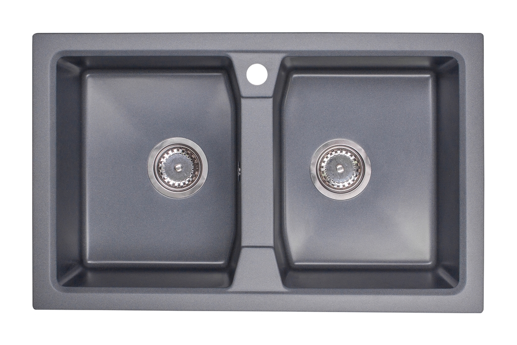ДВУХКАМЕРНАЯ ГРАНИТНАЯ РАКОВИНА ГРАФИТ + СИФОН