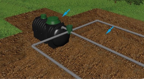 Сооружение по очистке бытовых сточных вод оборудовано дренажной системой из туннелей «Аквабин» емкостью 300 литров каждый. Это решение, предназначенное для небольшого участка, где нет места для традиционного дренажа.